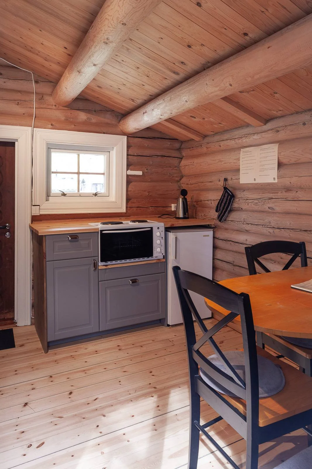 Overnattingen tilbys i koselige tømmerhytter med ulik standard og plass til 2–6 personer, i tillegg til camping, telt- og bobilplasser. Det nyoppussede sanitæranlegget er velutstyrt, og felleskjøkkenet gir et komfortabelt opphold for både korte og lengre besøk. Nærhet til dagligvare, hurtiglader og turstier gjør stedet ekstra enkelt å velge for aktive reisende.