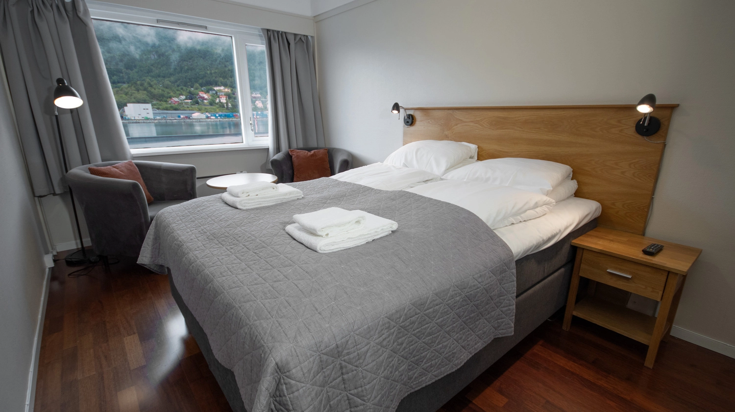 Bremanger Fjordhotell tilbyr overnatting i 45 flotte rom, inkludert standard dobbeltrom og familierom/suiter. Det er også leiligheter med eget kjøkken tilgjengelig for familier.