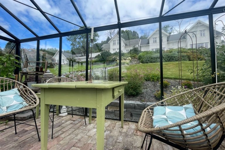 Ta fergen fra Halhjem over til Våge. Herfra er det 10 minutters kjøring til Haaheim Gaard