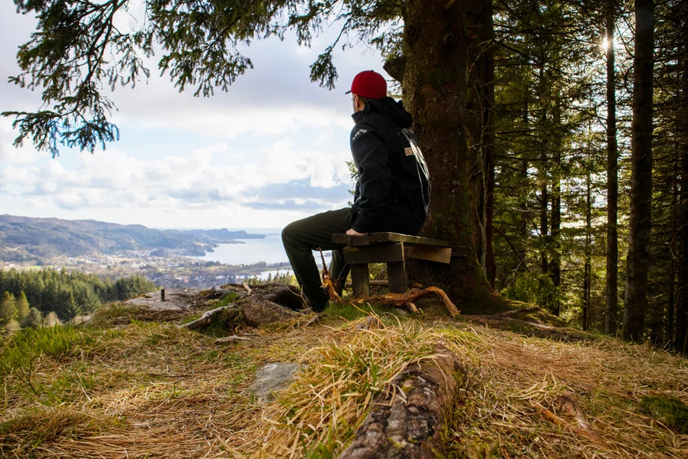 Det er et utsiktspunkt hvor du kan se utover Fanafjorden. Anbefaler og returnere samme vei.