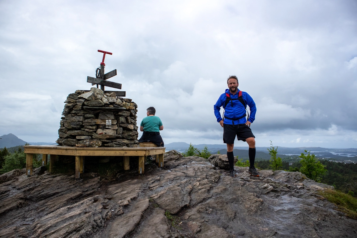 På toppen er det flott utsikt til alle kanter. Tilrettelagt med benker. Går du mot nord er det bygget en fin hytte hvor man kan søke ly for regnet. Følg merket sti videre mot vest og deretter mot nord. Siste stykket går det jevnt nedover vekselvis sti og trapper til bilveien ved Steinrusten.