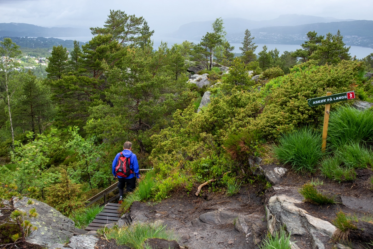 Askøy på Langs er en fin tur som går hele veien fra Kleppestø til Herdla. Totalt er distansen 37 km. Turen er merket hele veien med trepinner og skilt. Det er bygge kilometervis med trebroer slik man praktisk talt kan gå tørrskodd hele veien.