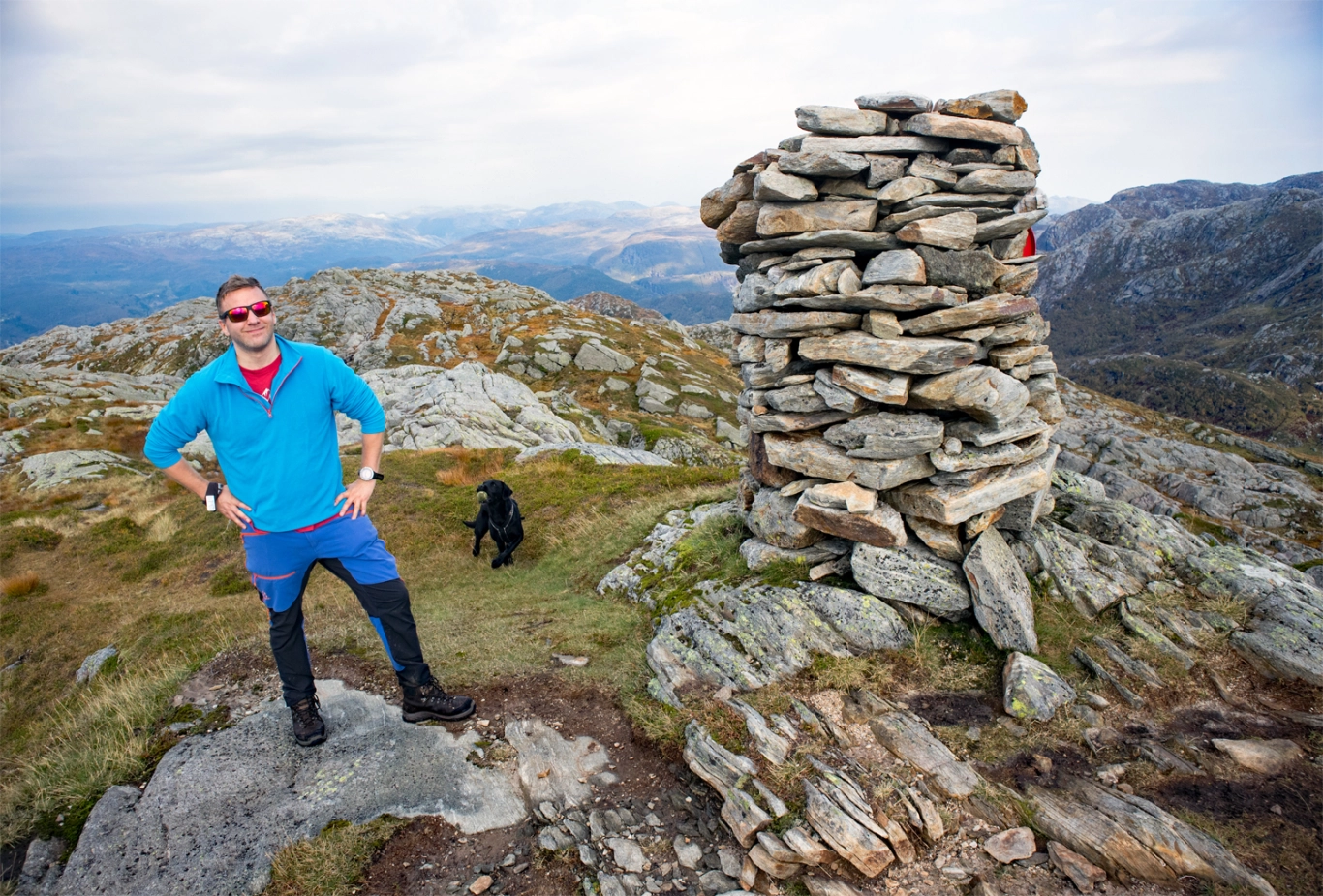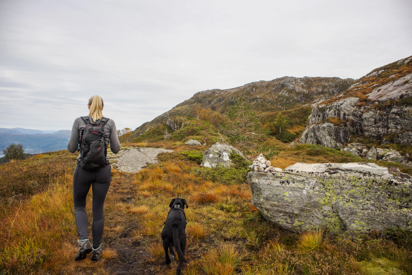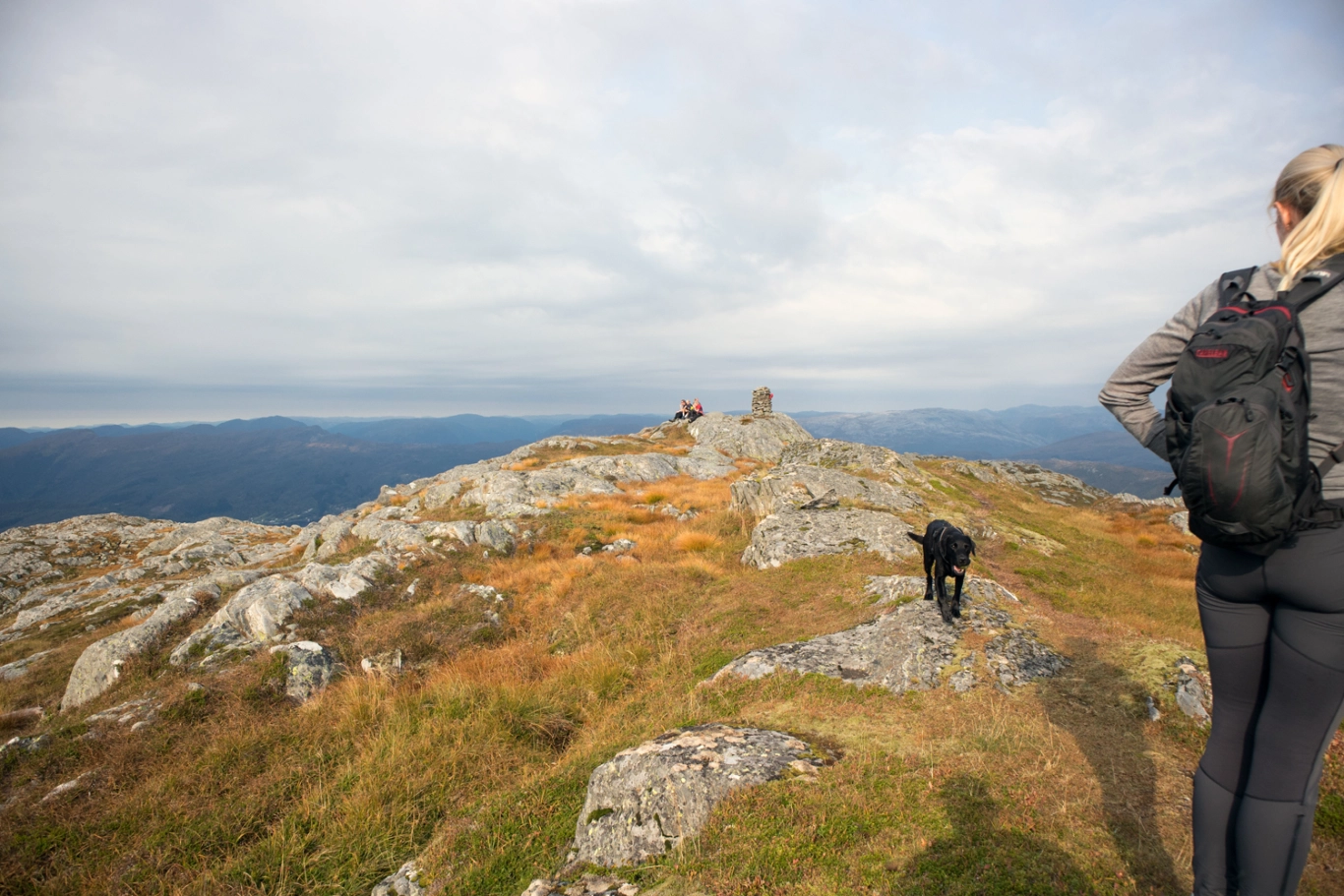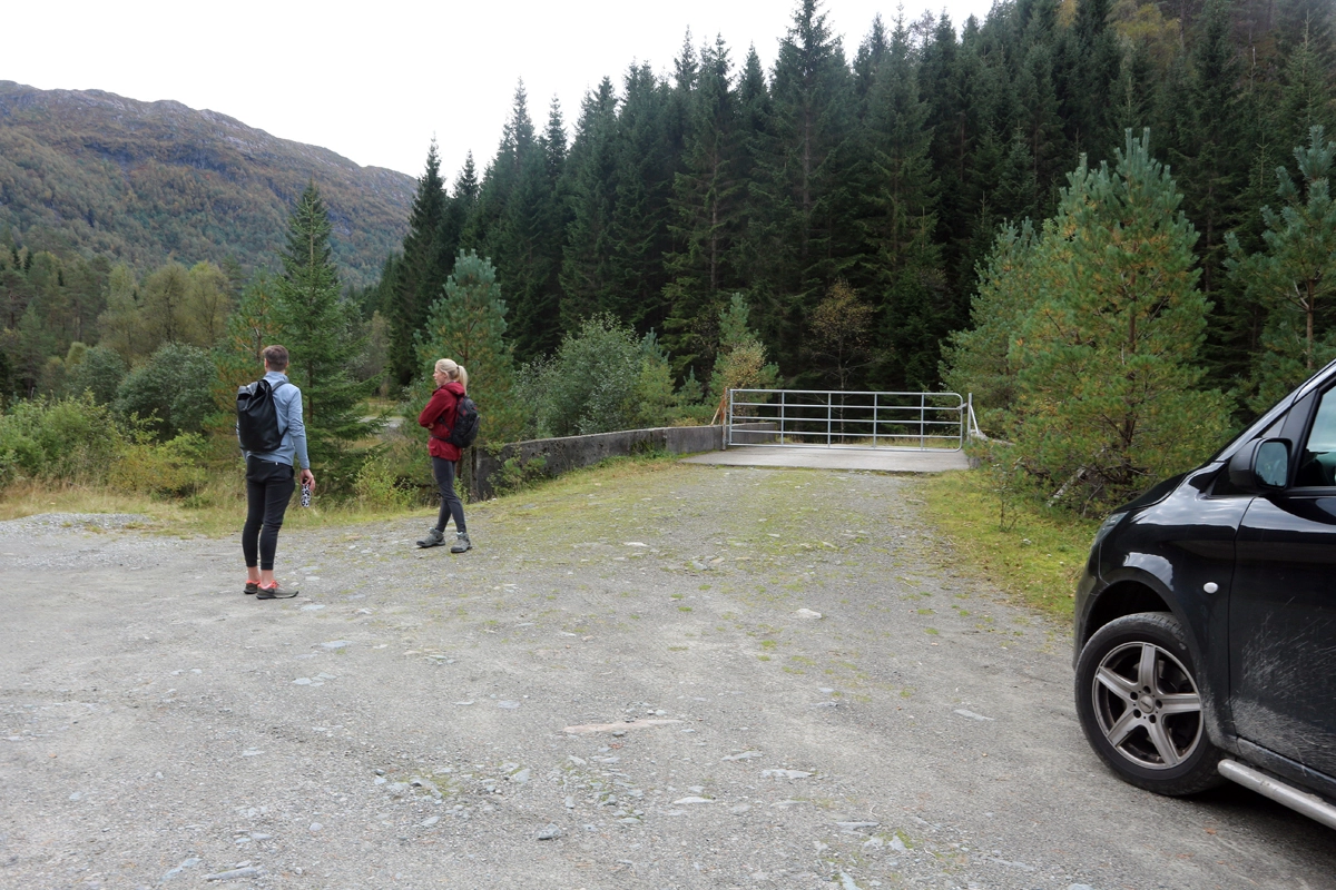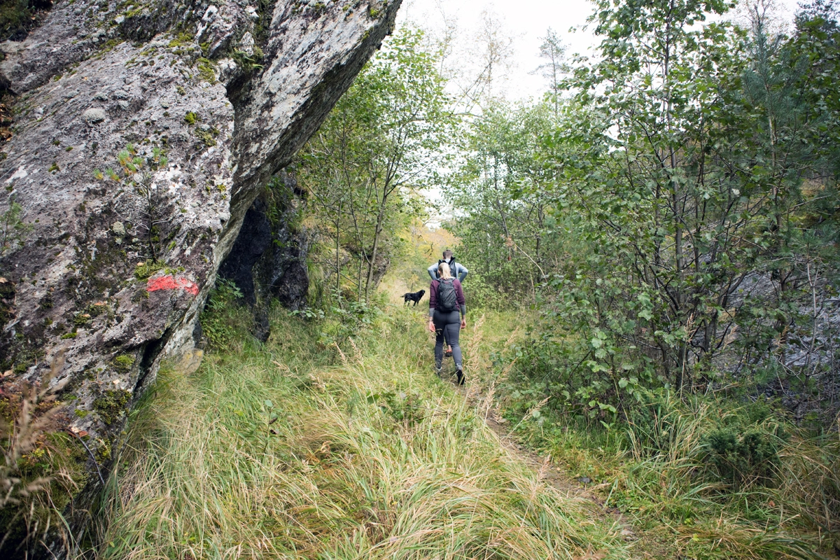 Gå samme vei tilbake. Det er mange myrete partier så høye fjellsko anbefales.
