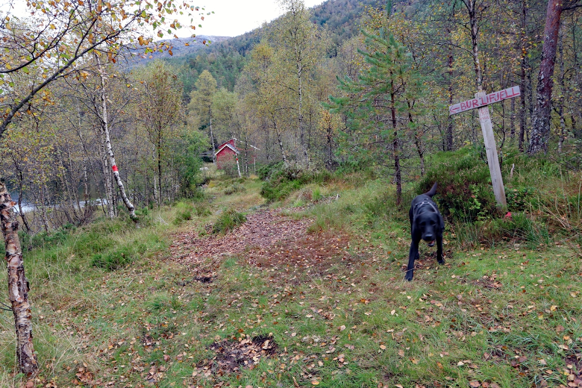 Fra parkeringen går du over broen (med bommen) og følger skogsveien sørover med elven på venstre side. Følg svingen rundt vannet til skilt merket "Burlifjellet". Her går veien over på sti. Kryss elven å gå forbi hytten. Deretter følger du rødmerket sti gjennom skogen.