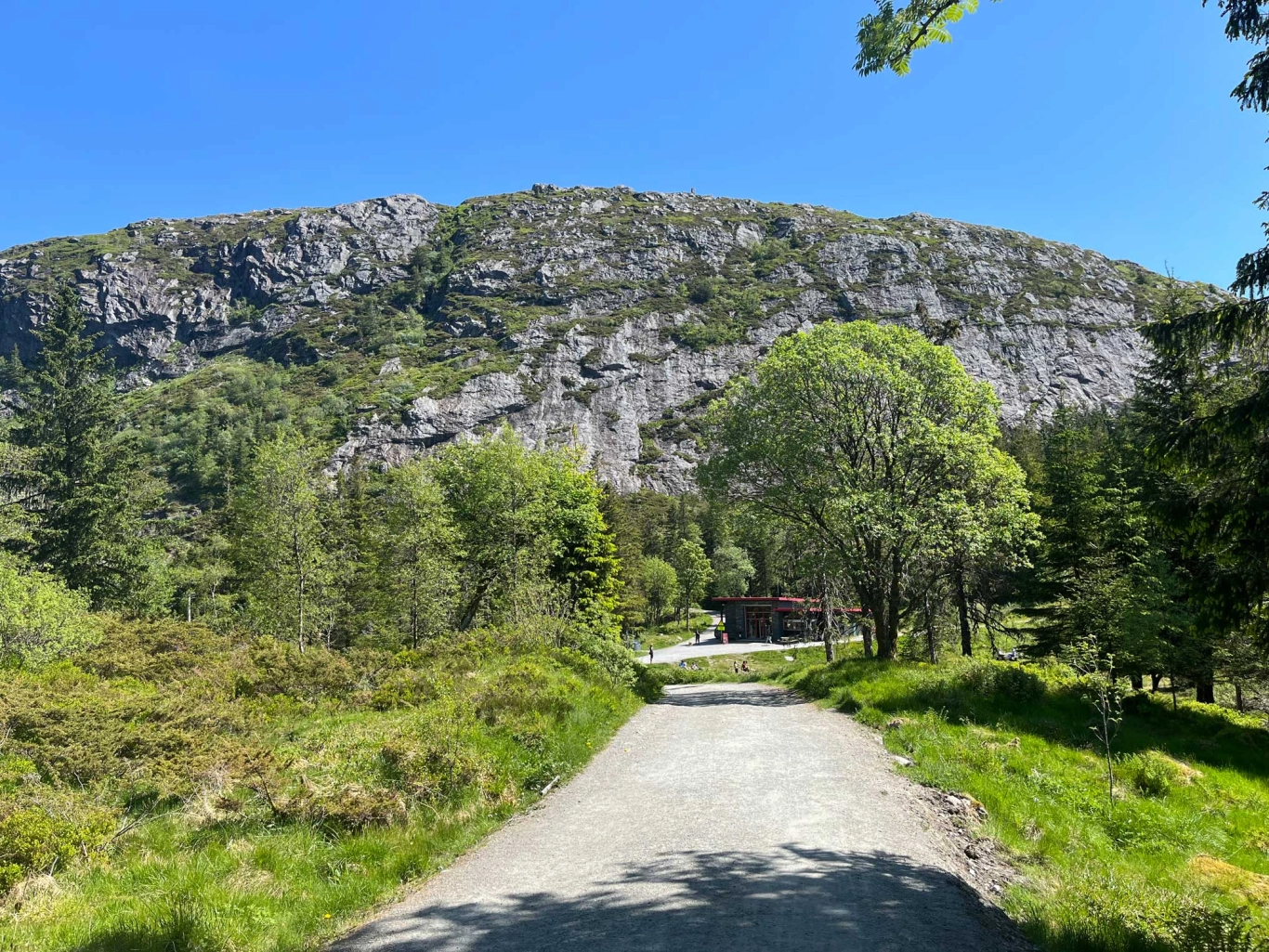 Turen til Fjellhytten på Fløyen starter ved Fløibanens nedre stasjon. Gå opp sving...