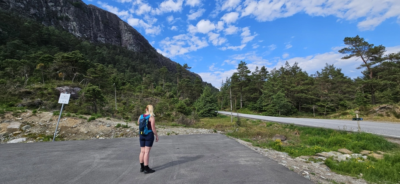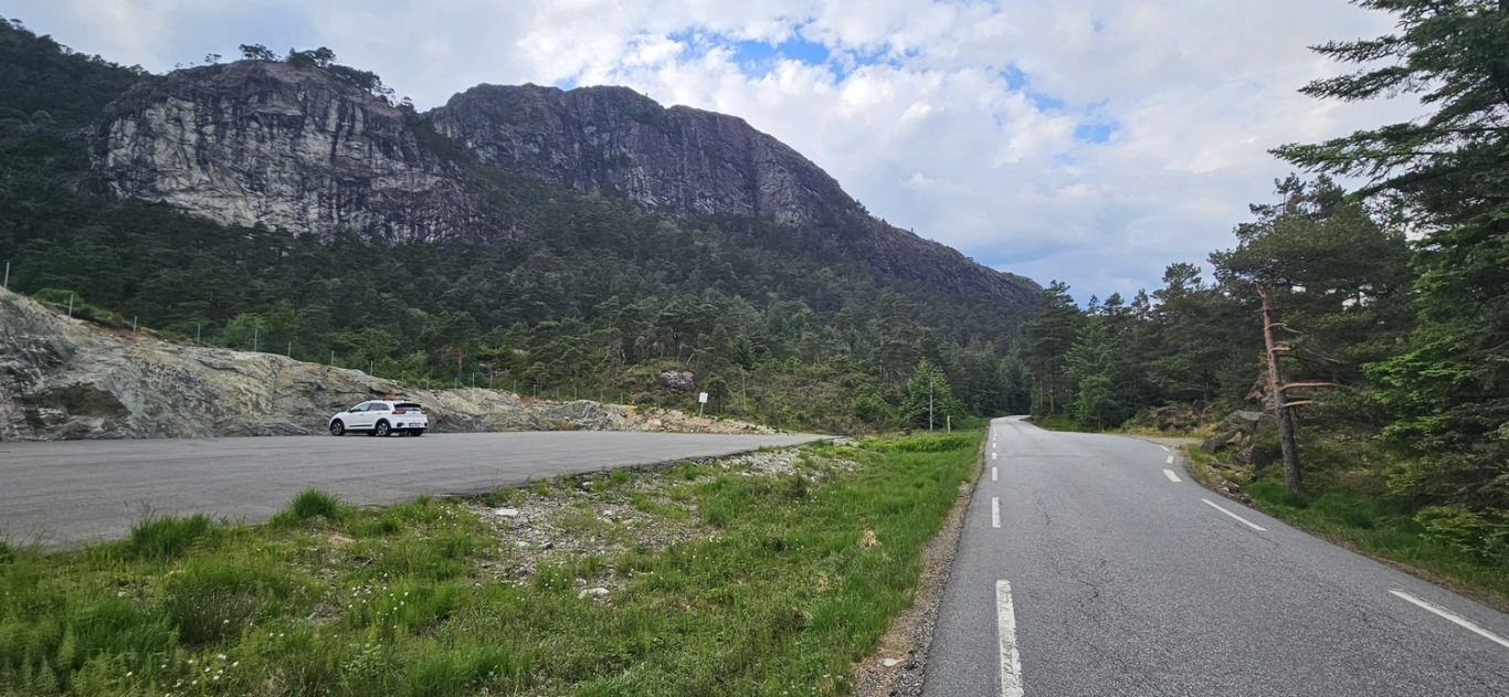 Gratis parkering langs veien.