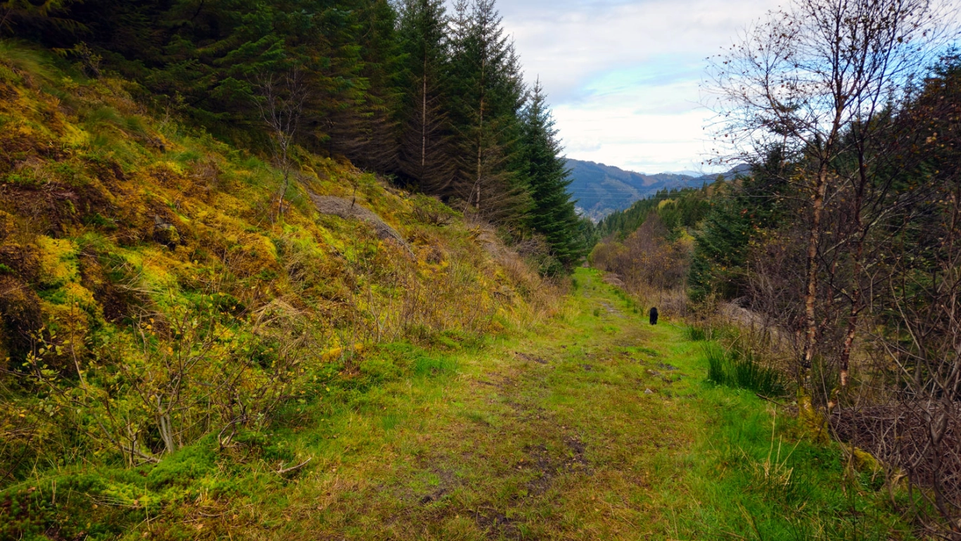Etter et stykke svinger stien inn i granskogen, hvor du vil oppdage trær utsmykket som morsomme figurer med luer. Følg stien ned til en ny skogsvei som leder deg tilbake til startpunktet. God tur!