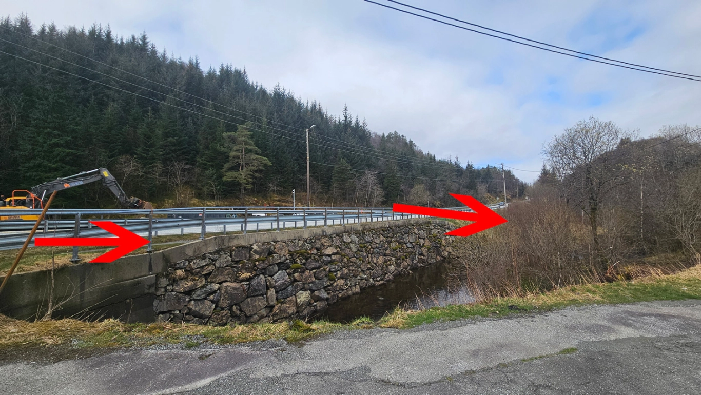 Fra parkeringen følger du stien langs autovernet til hovedveien ca. 150 meter. Der går det en vei ned mot hyttene på nordsiden av Øyjordvatnet.