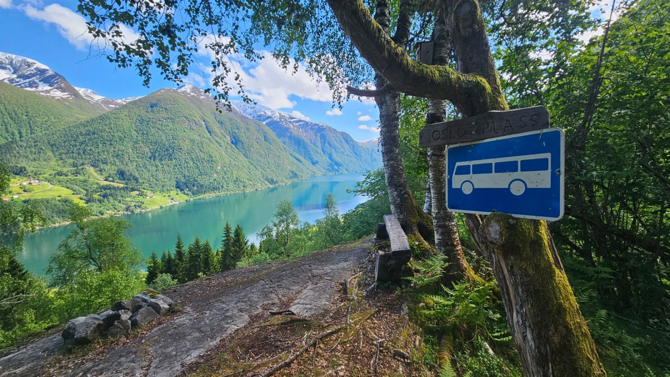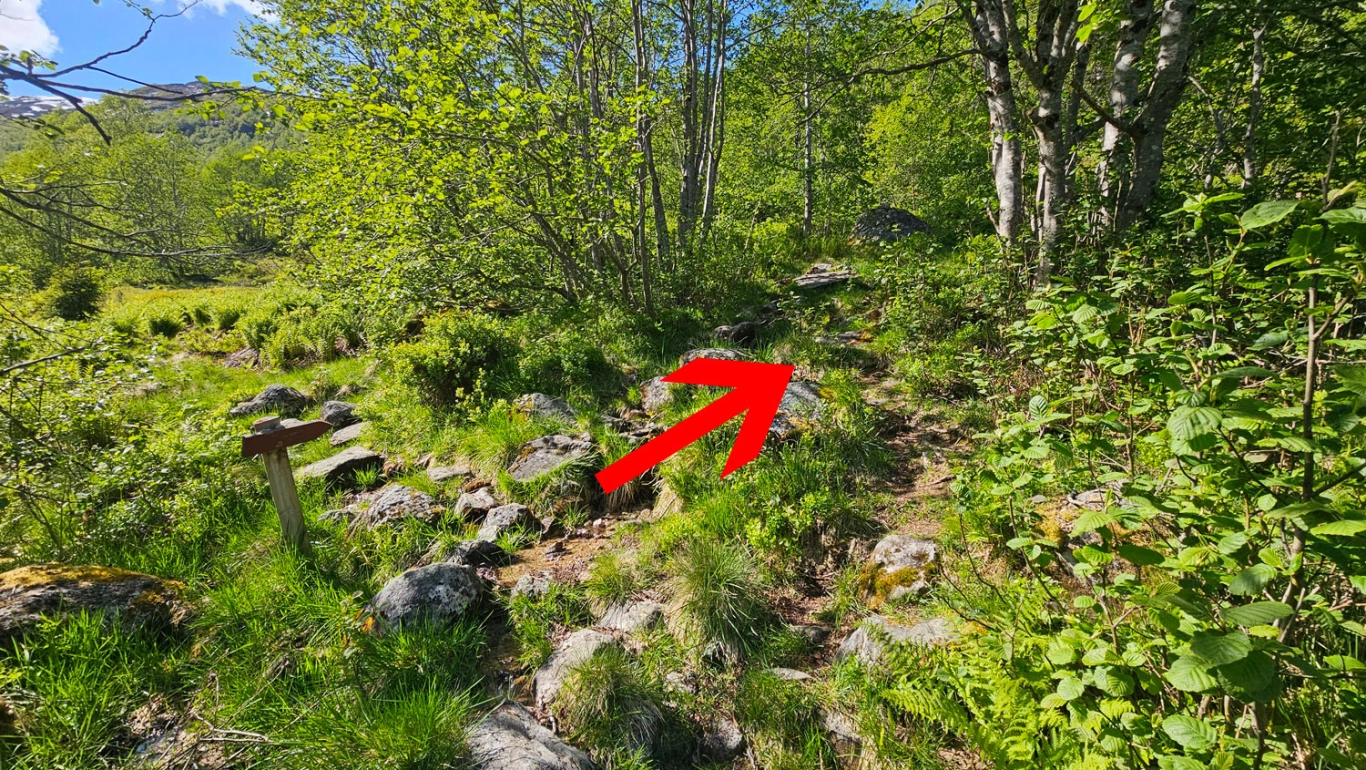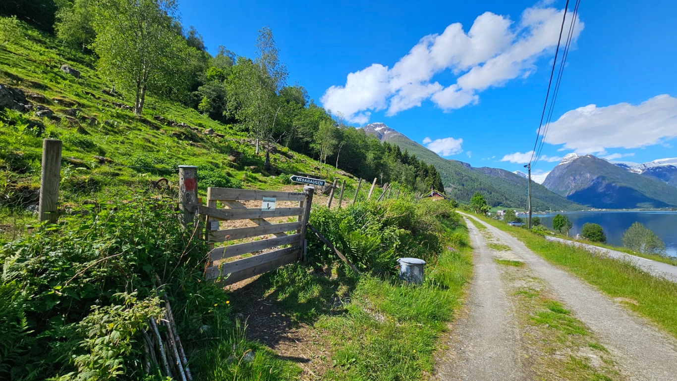 Vi startet turen ved å gå fra Fjærland. Dette innebærer omtrent 2 km langs hovedveien. Dersom du ønsker en kortere tur, kan du kjøre denne strekningen og parkere ved Homrane, hvor det finnes flere parkeringslommer langs veien. Ved Homrane står det et skilt merket "Nesahaugen". Gå gjennom porten – husk å lukke den da området er beite. Følg stien som slynger seg oppover beitet til du kommer inn i skogen. Her blir stien tydeligere, merket med røde striper på trærne og enkelte rødmalt trepiler.