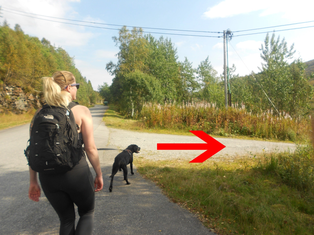 Følg stien langs Eikedalsvatnet. Deretter går du på sti langs Tordalselva til broen. Kryss elven for å gå rundt hytta på høyre side. Her er det slutt på sti og du må gå i terrenget.