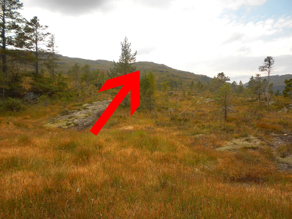 Gå mot Rabalhei som ligger mot nordvest. I starten går du gjennom myrer og skog. Når du kommer over tregrensen blir terrenget lettere. Fortsett mot nordvest til du ser en merkestein. Gå videre noen hundre meter til du ser varden.