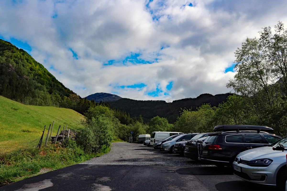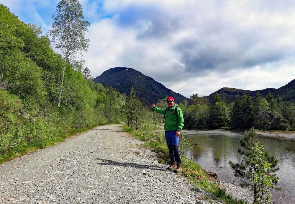 Start turen i sjarmerende Hausdalen. Gå skogsveien innover forbi campeplassen lang...