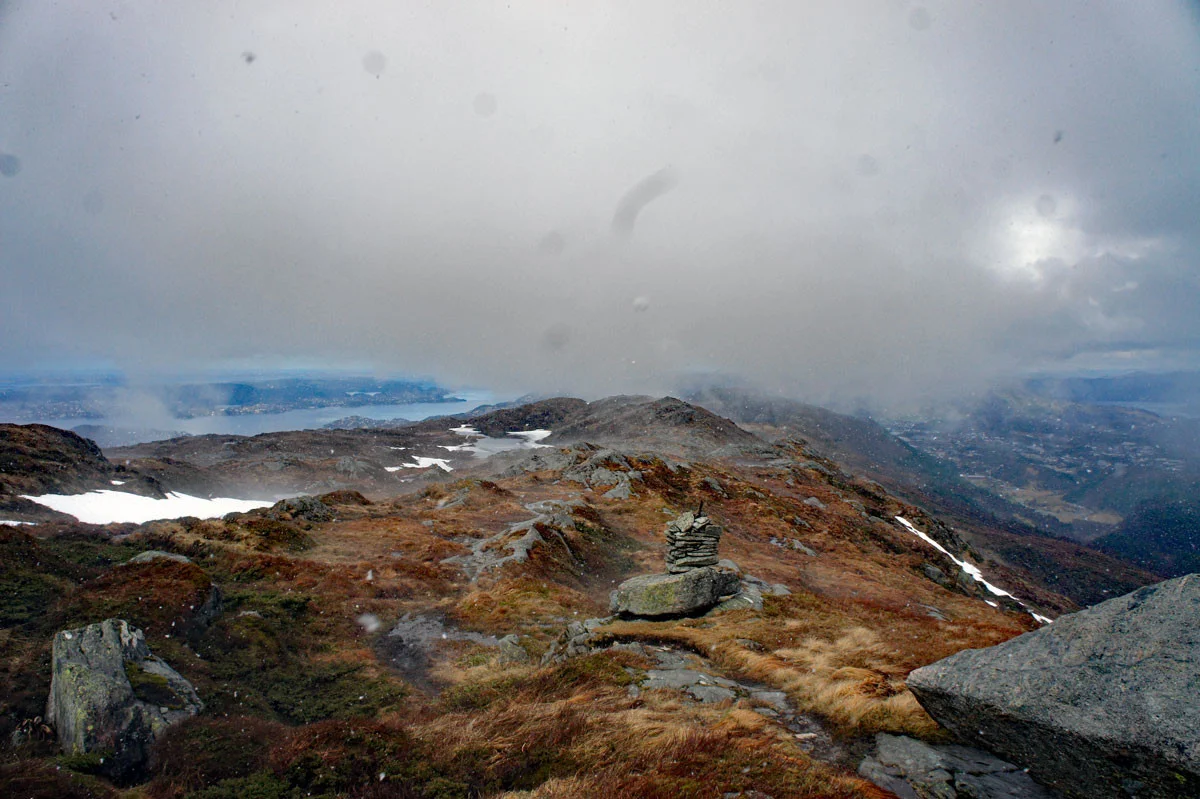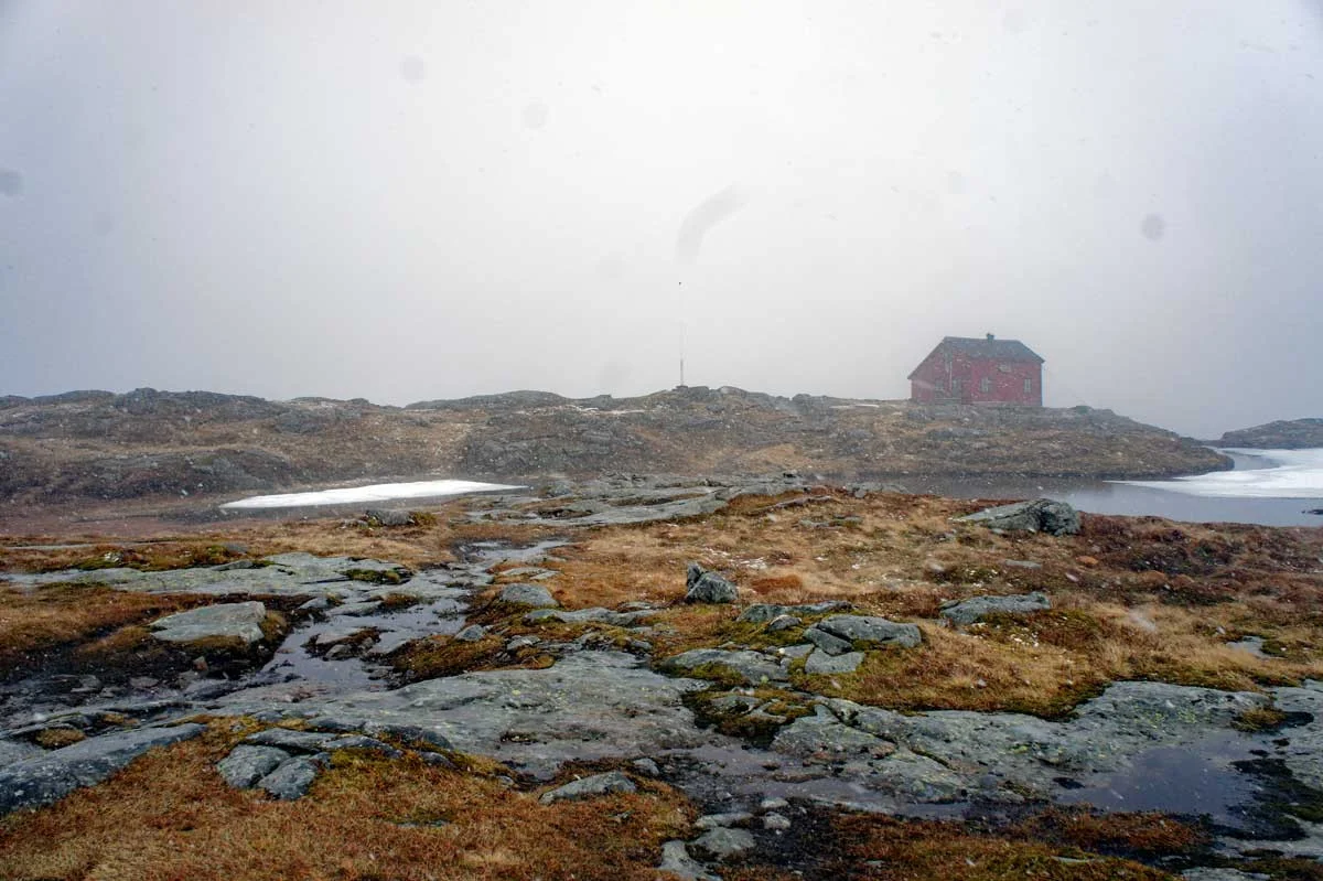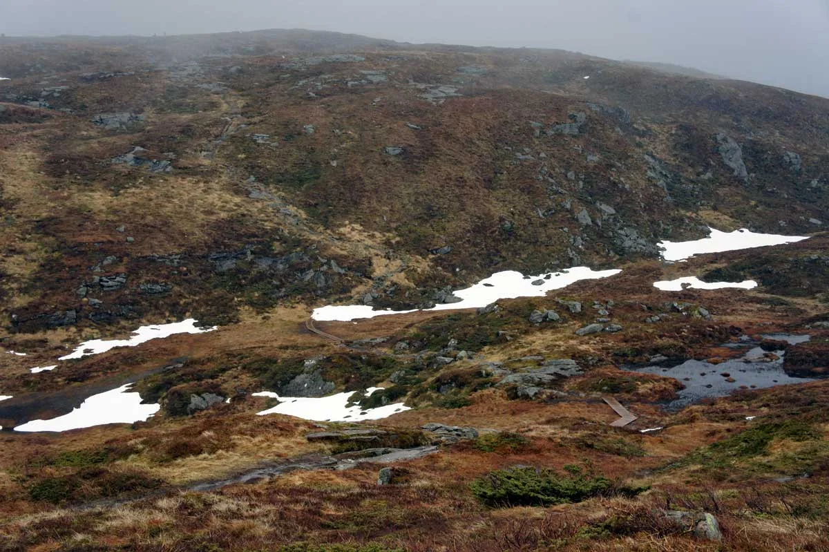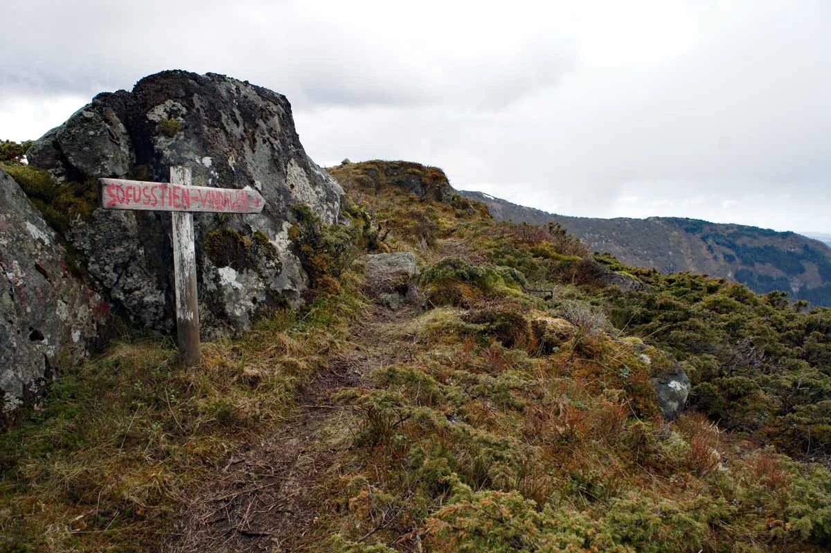 Her kan du enten gå ned den bratte Sofusstien å skrive deg inn i boken, eller fortsette til demningen å gå ned den mer moderate røyrgaten.