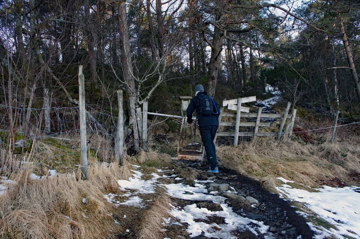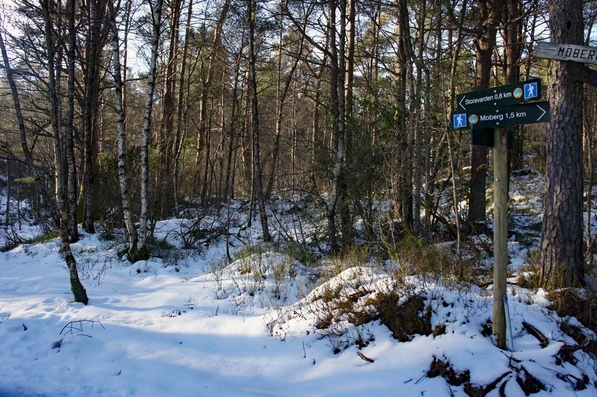 Følg Kuvågveien opp bakken, og gå til høyre i undergangen, og videre opp Mobergslia. Følg svingene oppover til du ser en gård på venstre side. Her går du stien langs gjerdet over jordet. Gå gjennom grinden og følg stien skiltet "Storevarden 0,8 km". hele veien til varden. Nyt utsikten over Bjørnafjorden ! Gå samme vei tilbake eller ta en av de mange ekstra rutene for en lengre tur.