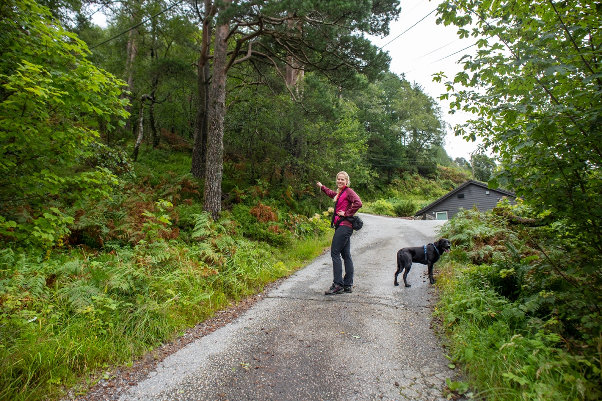 Turen starter ved Svartatjørna. Gå ca. 100 meter langs veien. På motsatt side av veien går en ny vei opp til høyre. Følg denne veien opp bakken og rundt svingen. Ca. 100 meter før huset går en sti på venstre side inn i skogen. Følg denne stien opp i Rosenlundveien (asfaltert vei). Gå ca. 20 meter før ny sti leder opp fjellsiden på venstre side. Om du ser opp vil du se at stien går under en gammel telefonledning.