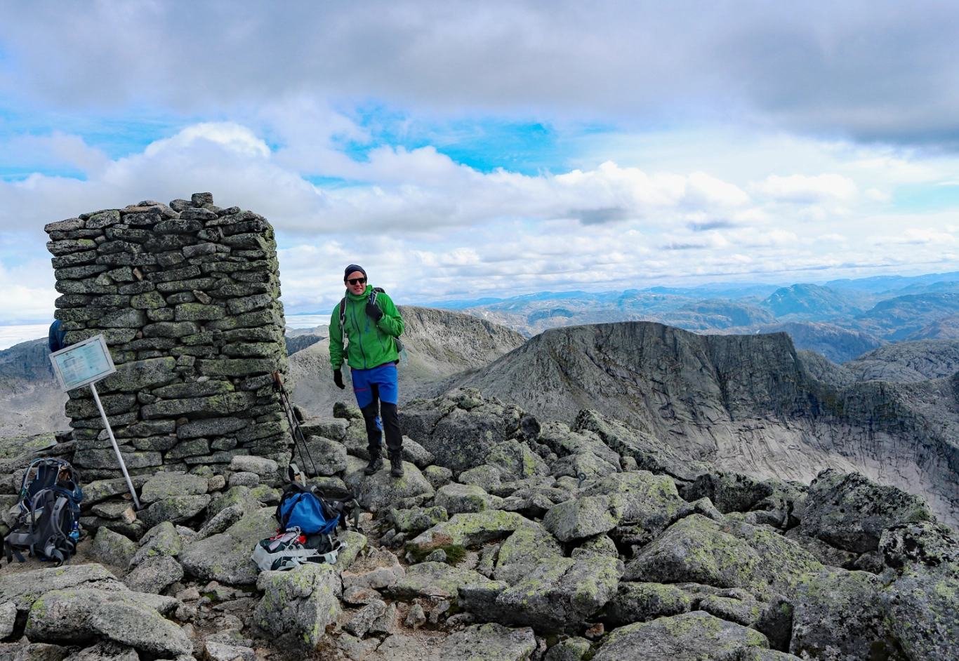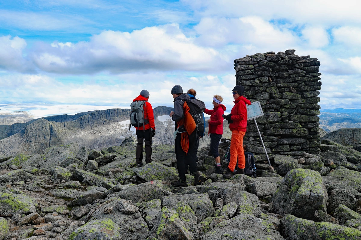 Toppen byr på spektakulær utsikt over Folgefonna, Hardangerfjorden og fjellheimen rundt, men turen er krevende og egner seg best for erfarne fjellvandrere.