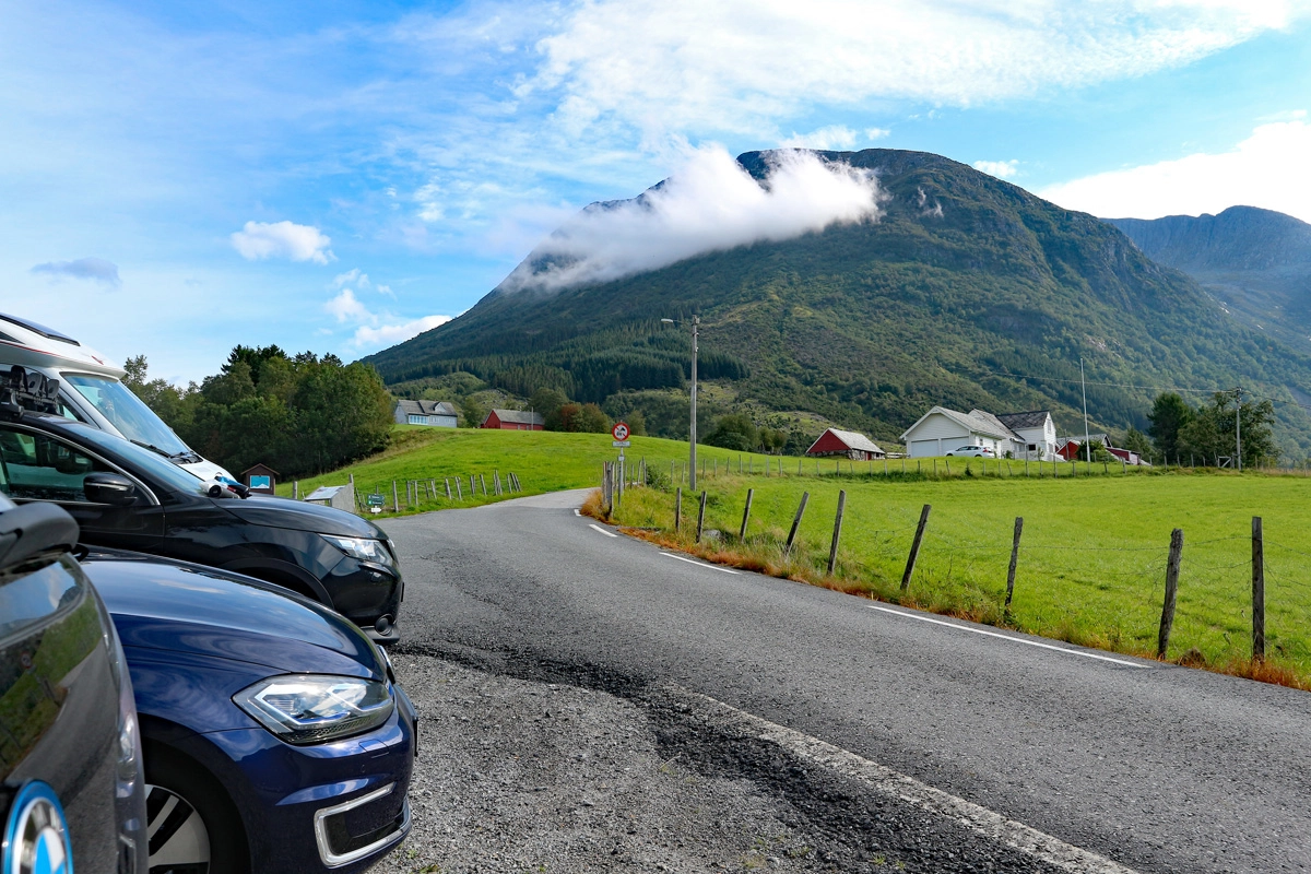 Fra parkeringen er det merket sti frem til Svelgabreen. Gå til enden av parkeringe...