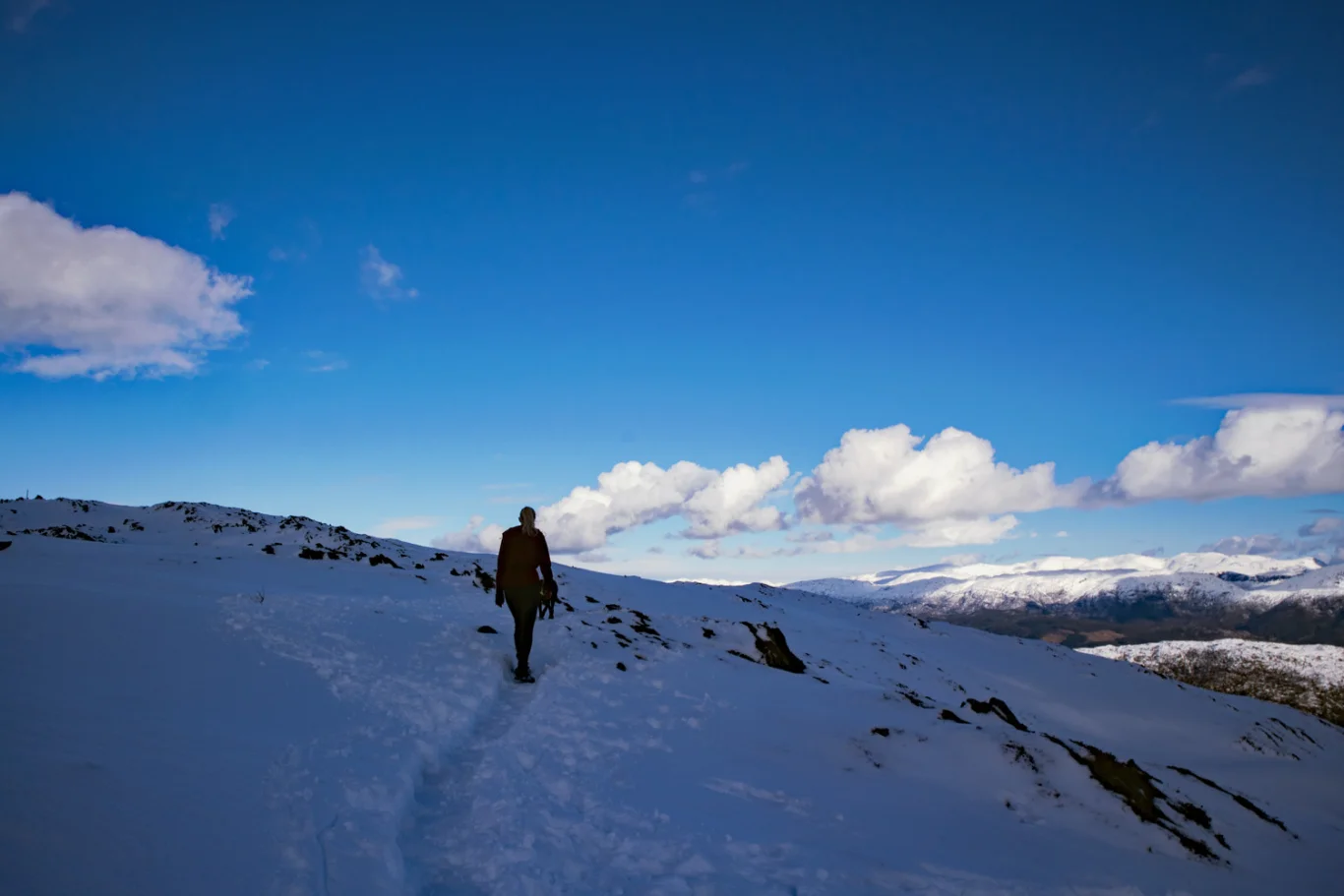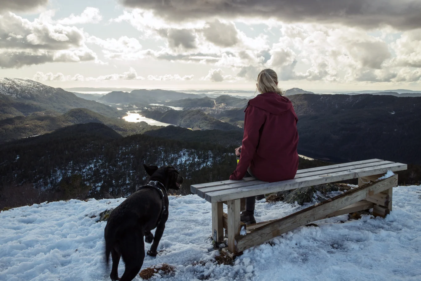 Når du kommer over tregrensen får du utsikt. Her er benk hvor man kan ta seg en pause å nye utsikten mot Os. Følg deretter ryggen nordover mot Midtsæterfjellet. Stien er god og terrenget er åpent.