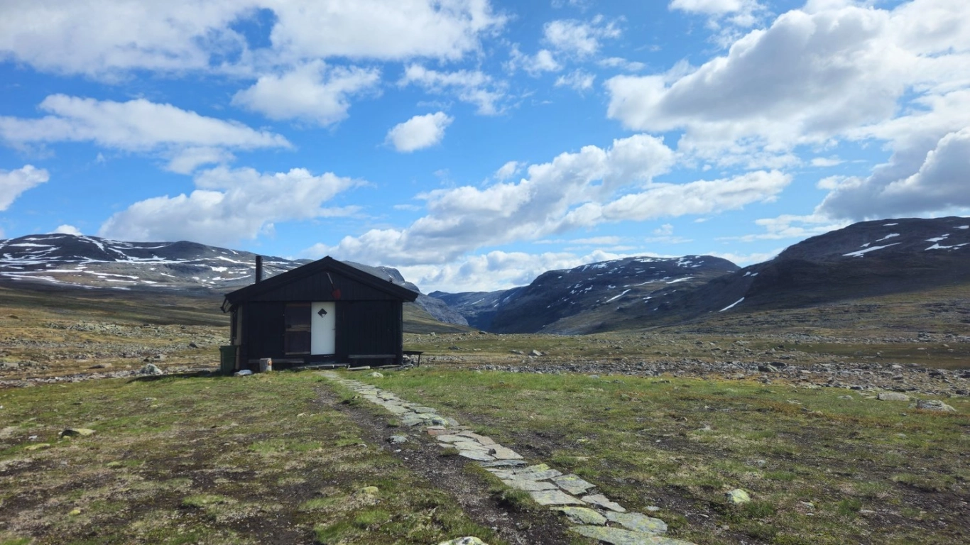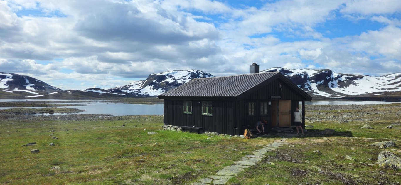 Hytta er en klassisk, selvbetjent DNT-hytte, med vedovn og matlager. Etter en natt her, er kroppen og knærne klare for dag for 2. etappe som går videre ned til Flåm.