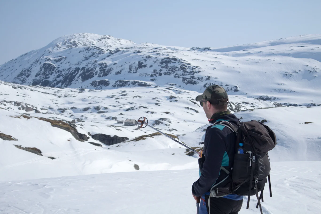 Renn ned dalen mot Øvstadukavatnet og gå rundt åsen og opp til hytten. Husk å gå i kanten om isen på vannet ikke er trygg.