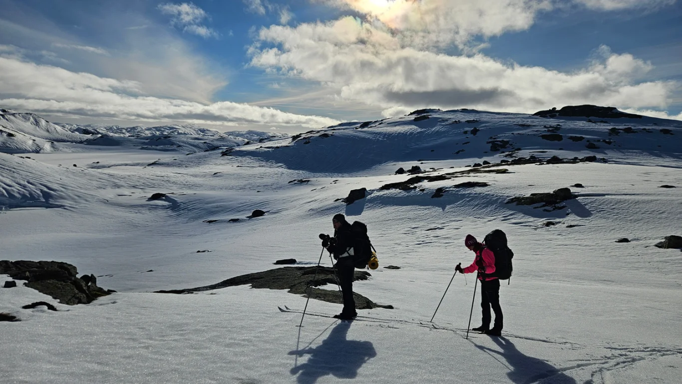 Dette er 1. etappe av en flott tredagers skitur gjennom Stølsheimen, med Ortnevik ved Sognefjorden som sluttmål.