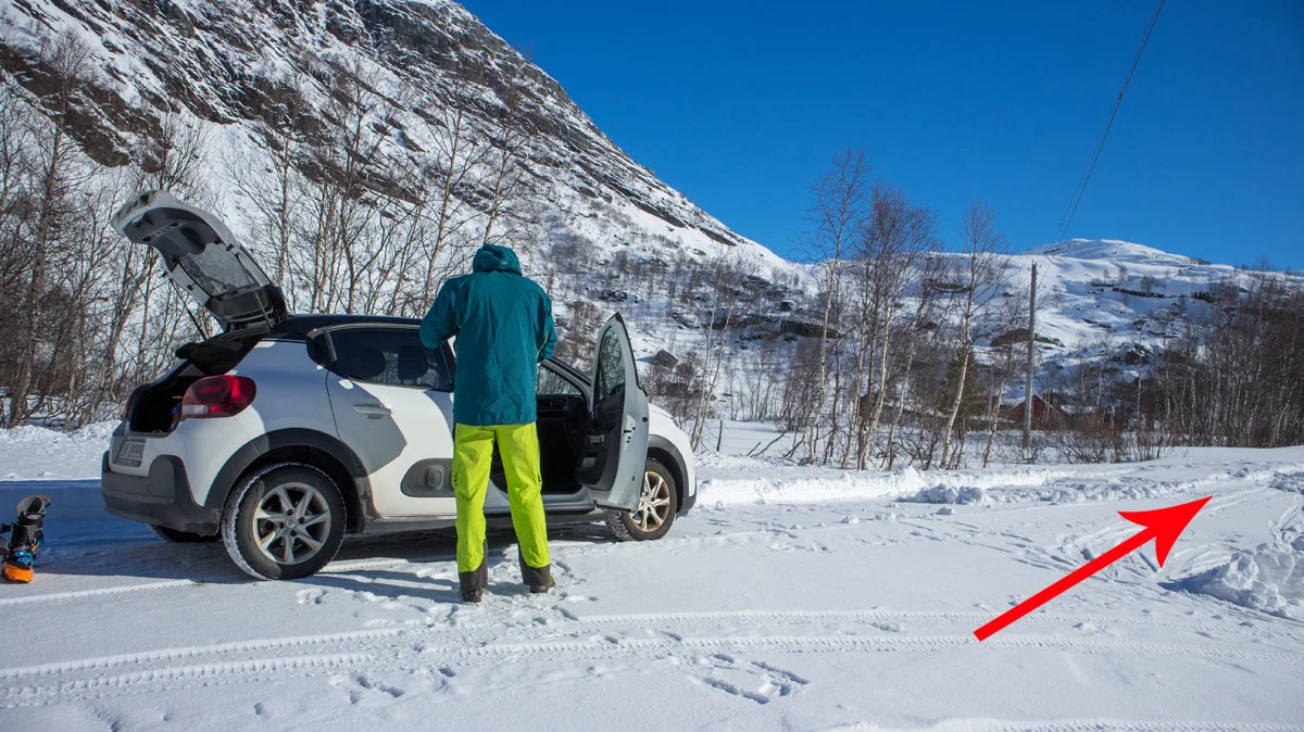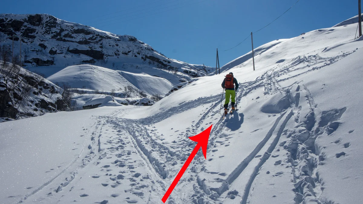 Spenn på skiene og følg anleggsveien ca. 300 meter innover i dalen. Like ved broen går du til høyre opp skråningen.