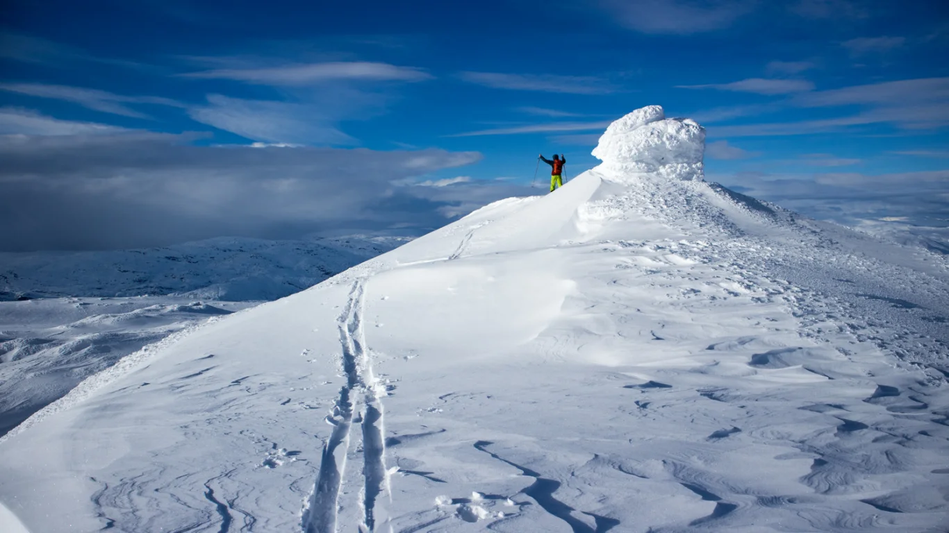 På vinterstid er varden en stor isklump. Nyt den vanvittige 360 graders utsikten for høyere kommer du ikke i Stølsheimen.
