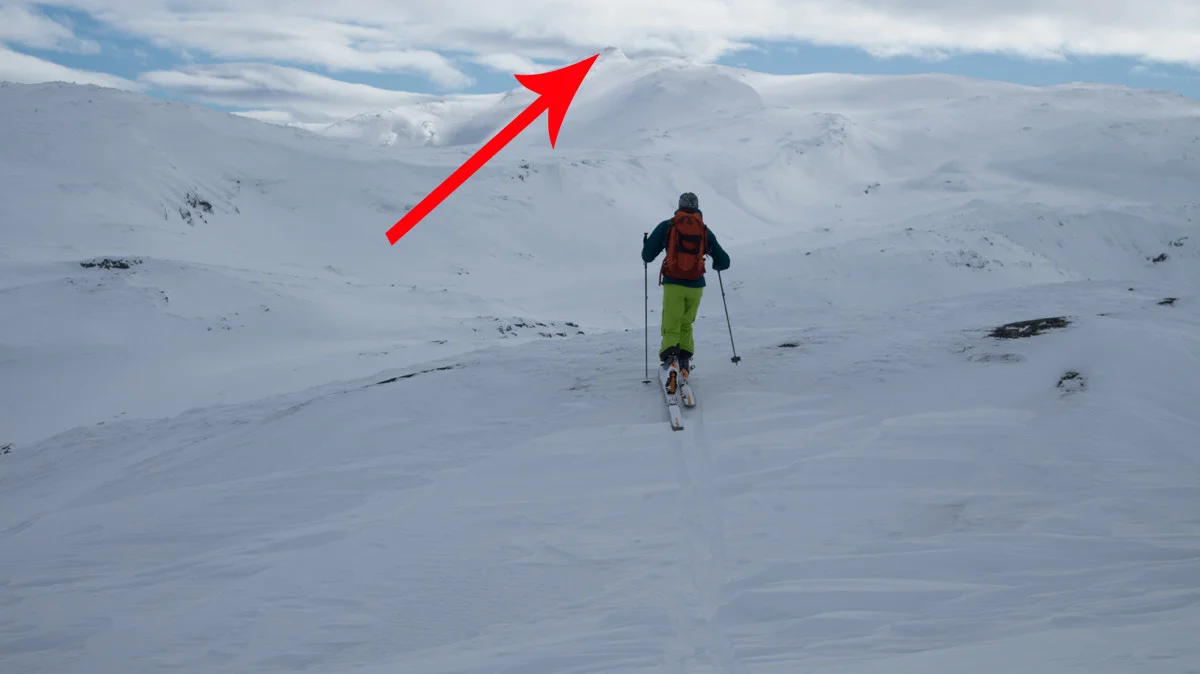 Nå man skal opp ryggen til Kyrafjellet må man passe på, for det kan ligge skumle snøskavler. Som du ser på GPS spor valgte vi gå sørover (høyre side retning Kvitanosi) på vestsiden før vi rundet tilbake opp på Kyrafjellet. Ned igjen tok vi et annet veivalg her. Så her må man følge godt med på terrenget.