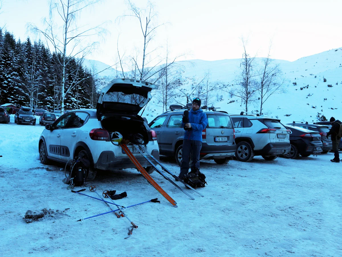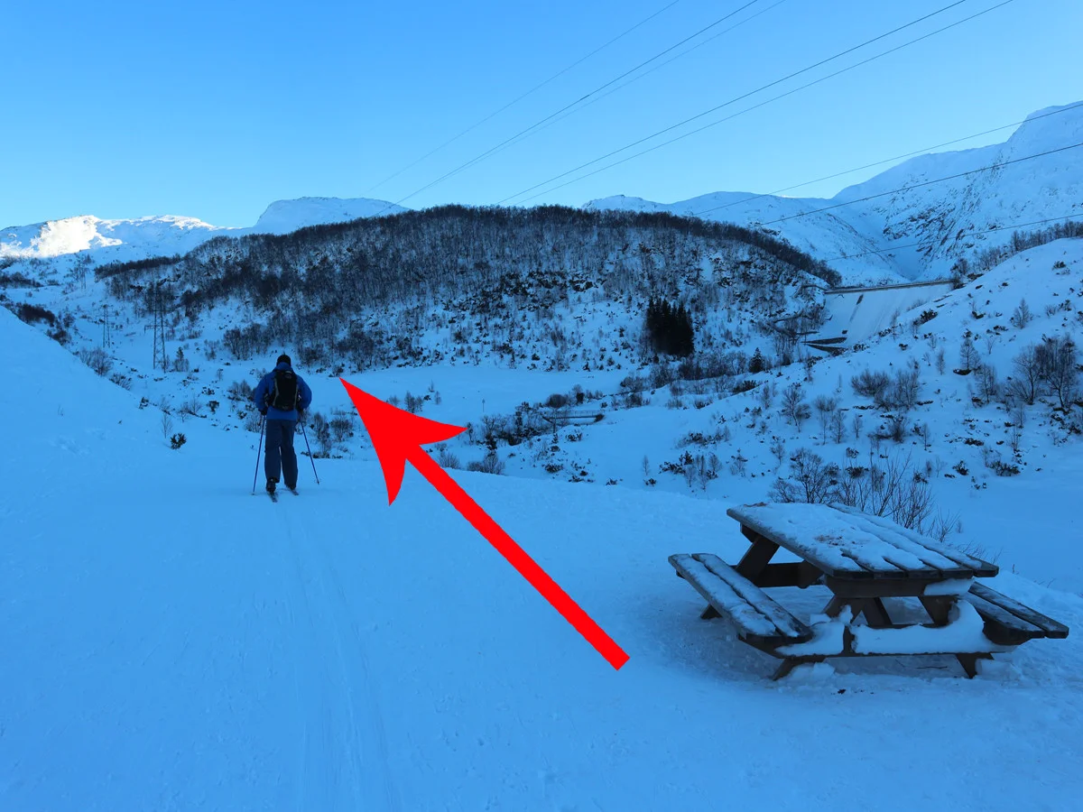 Skituren starter ved parkeringen. Følg veien innover til du ser demningen ved Svartevatnet. Her går du til venstre rundt Svartavannrinden. Det går vei her, men om vinteren vil det være skispor. Gå nordover rundt haugen ned til broen. Følg stien langs Svartavatnet. Dette er en dårlig sti og om vinteren er det is, så pass på hvor du går med skiene. Følg stien opp den bratte Svartavasslia og hold deretter til venstre i skråningen ved Tjørnadalen. Ikke gå ned i Tjørnadalen for her kan det være fare for snøras.