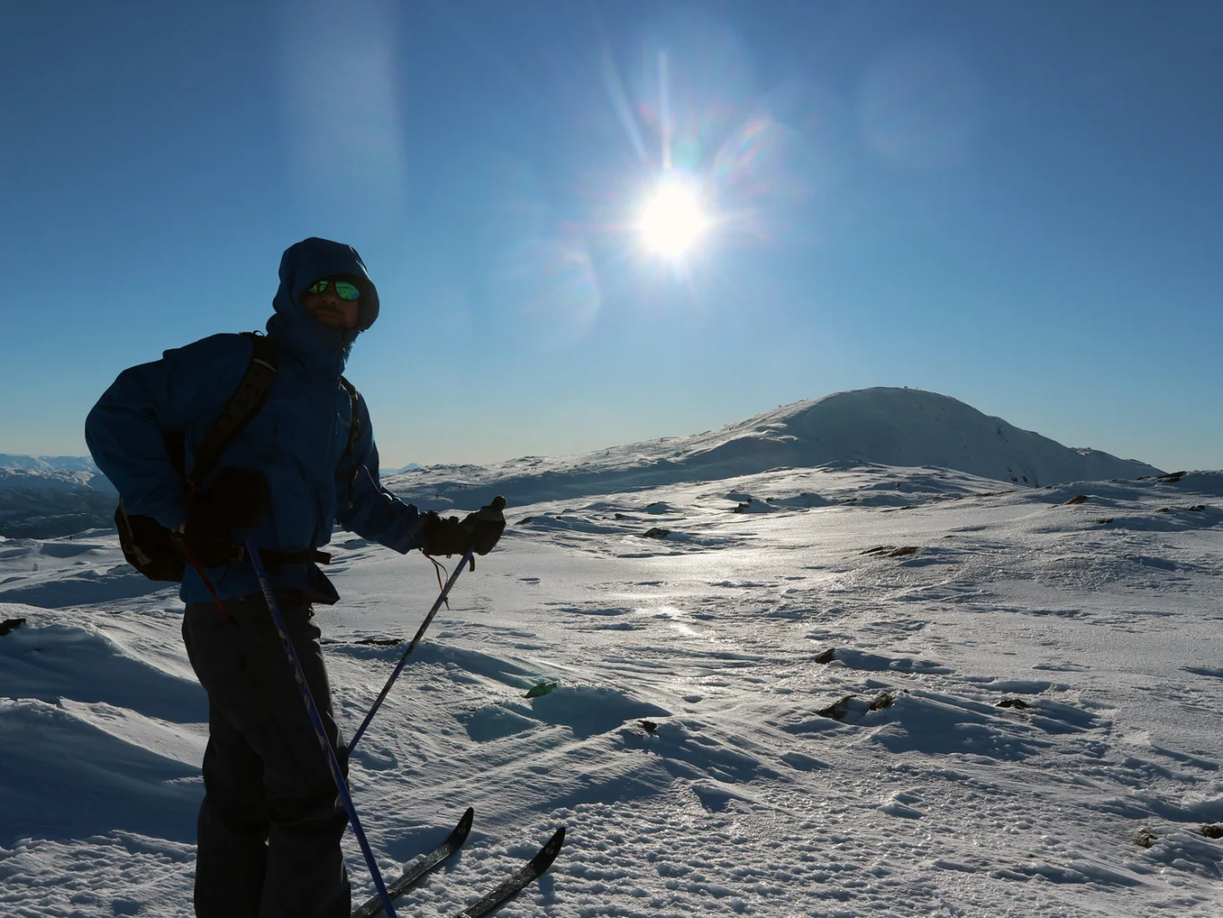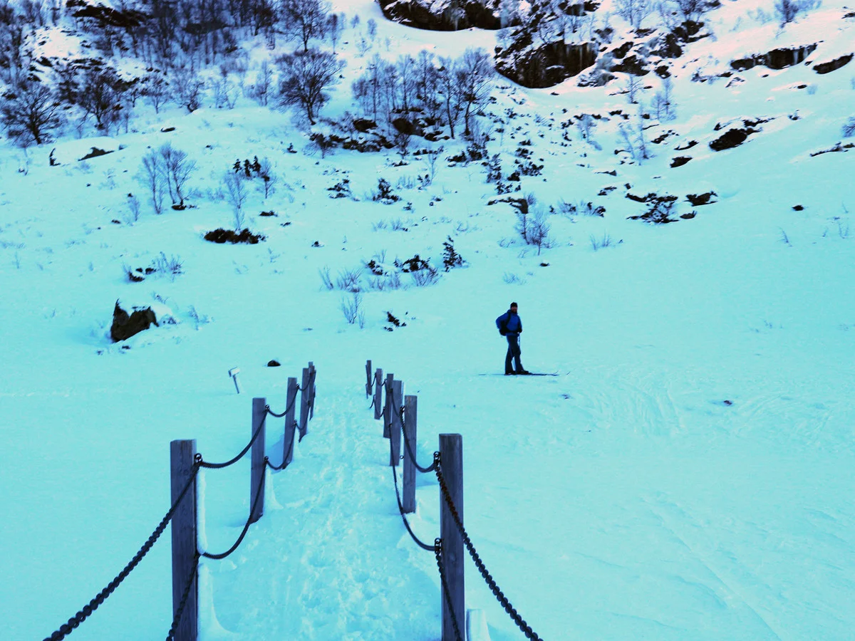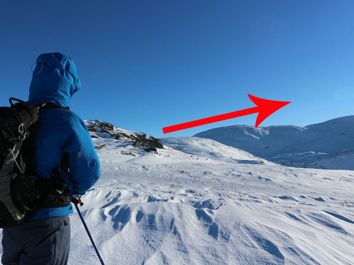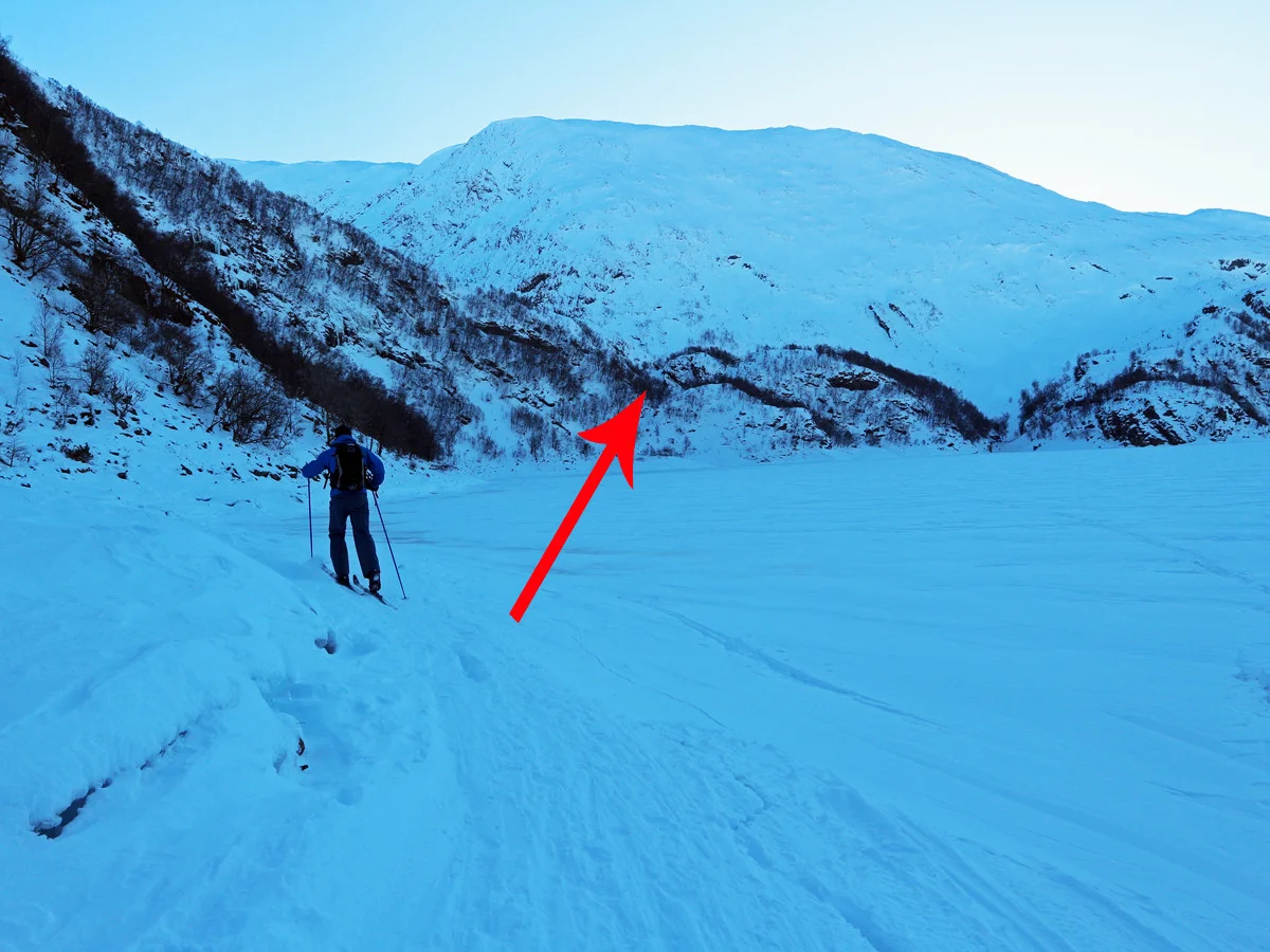 Dette er en krevende skitur. Den enkleste ruten på ski til Gullfjellstoppen går via Redningshytten og opp korketrekkeren.