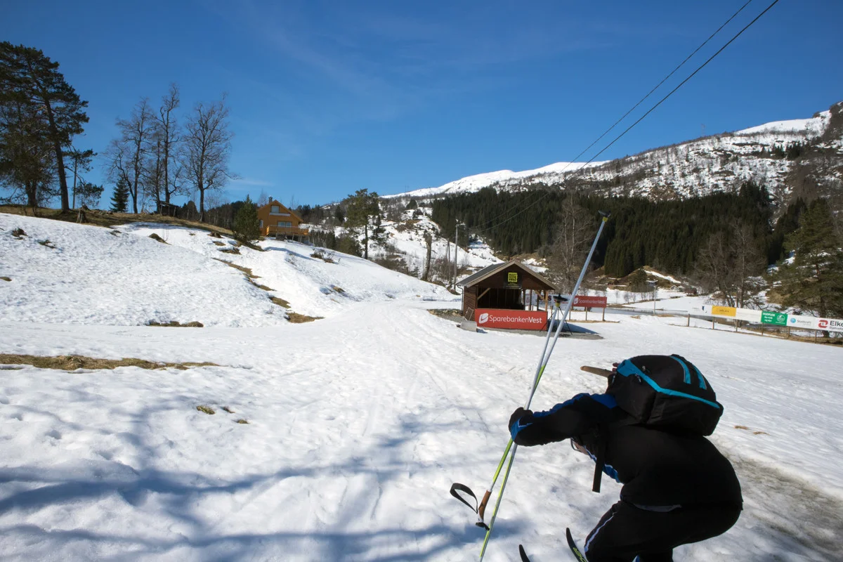 Ta en tur til Sjusete for en fin skiopplevelse. Her ligger snøen mye lengre enn i Bergen!