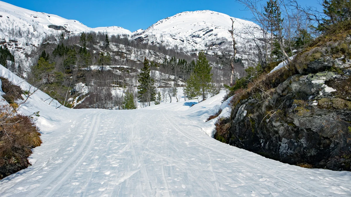 Starten er enkel, langs den opptråkkede løypen til Byrkjesete, før du tar fatt på ...