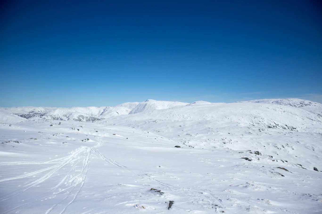 Fra toppen kan du følge samme veien ned eller du kan følge varderekken videre innover mot Austefjellet.