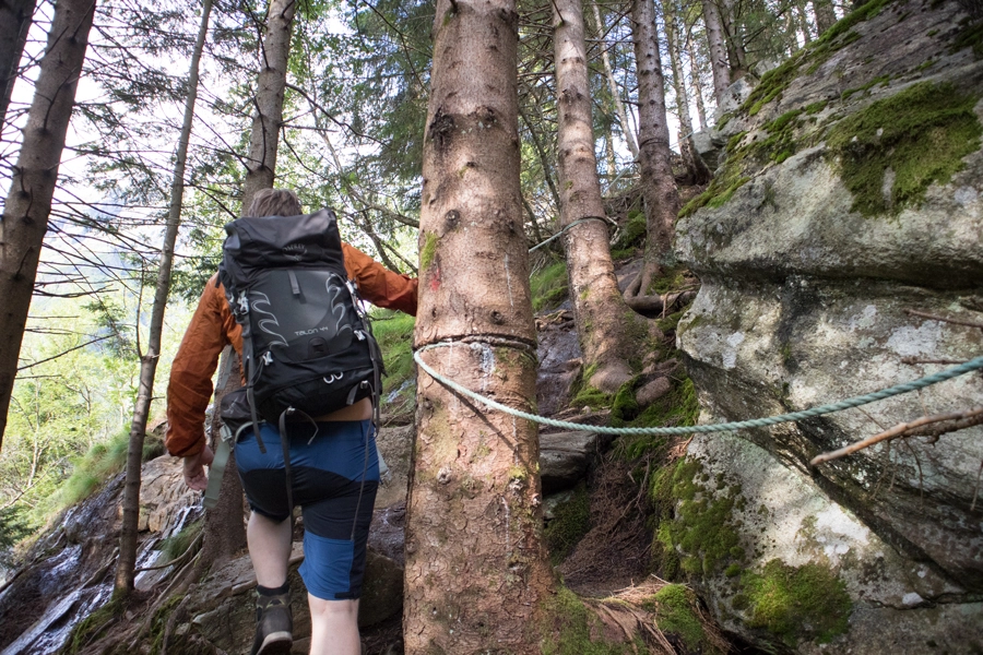 Når man kommer over tregrensen blir stigningen slakkere. Deretter går det bratt sikk sakk sti i opp til 1100 moh. Her er det et fjellplatå hvor fra patchellhytta møtes. Stien fortsetter oppover langs fjellryggen og det blir mer luftig. Siste del er den luftigste og det er nødvendig med lett klyving. Her bør man ikke fortsette om man har høydeskrekk.