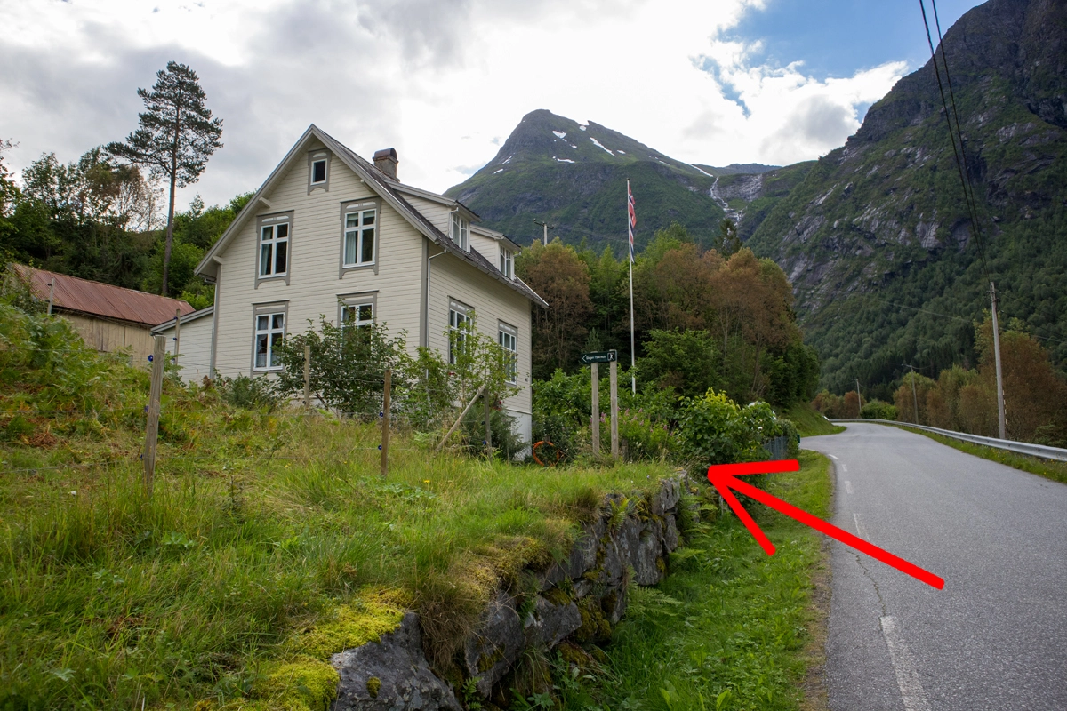 Dette er den bratteste ruten til Slogen. Turen begynner opp gjennom skogen. Det er god sti hele veien, men bruk gode sko for det kan være sleipt. Det er flere flotte utsiktpunkt på veien oppover. Det går an å fylle vann på ca. 600 moh. i en bekk.