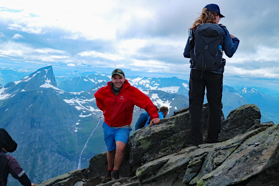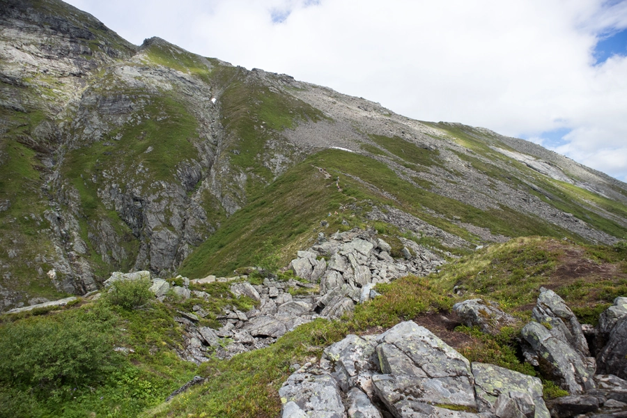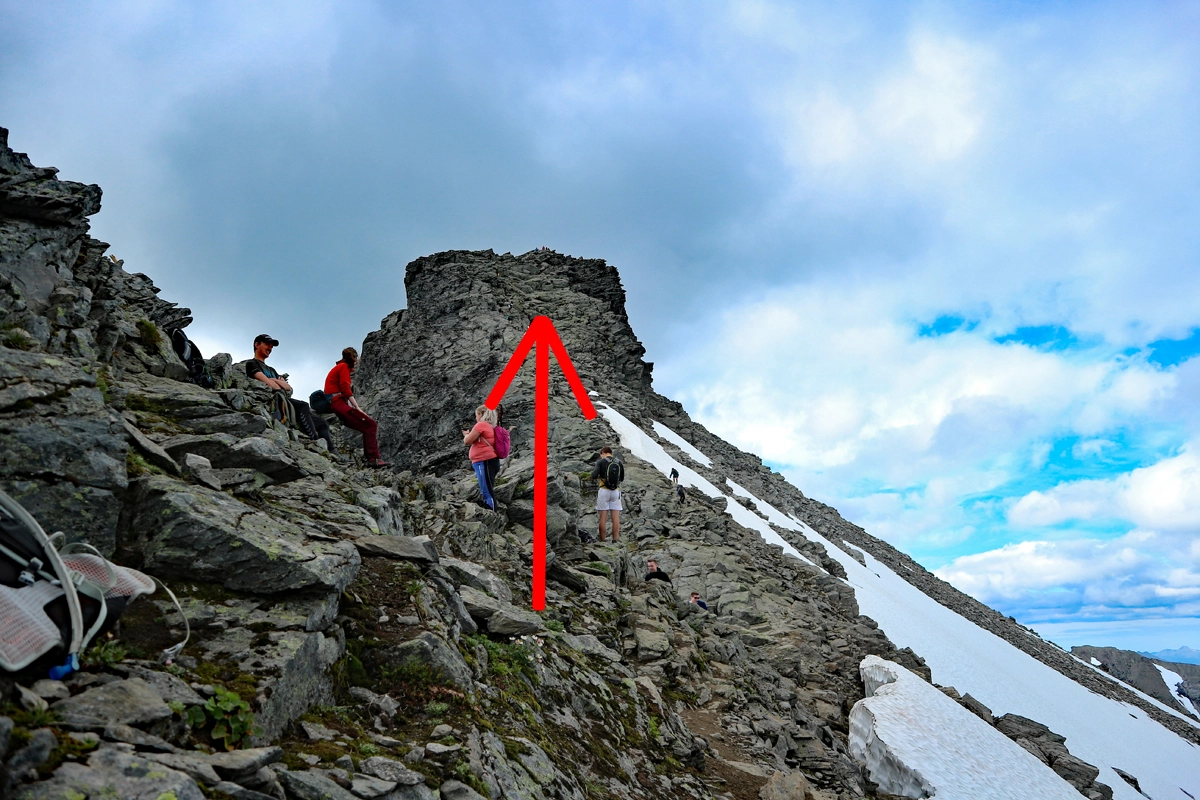 Denne ruten til toppen er tøff så jeg anbefaler at du er fjellvant og har gode knær til nedturen. Jeg vil påstå at den er hardere enn turen til Skålatårnet (1843 moh.)