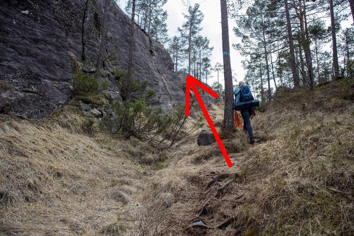 Fra veien går du inn på stien skiltet "Slottet". Følg stien oppover skråningen mot sør-vest. Gå forbi den store steinen og kryss den lille eleven. Det er jevn stigning hele veien og noe myrete i begynnelsen. Like etter eleven er det nytt skilt. Det er malt blå mærker på trærne og stien er god. Like før toppen går det nedover og man kan se fjellhyllen fra en tøff vinkel. Følg stien videre og rundt opp på baksiden av Slottet.