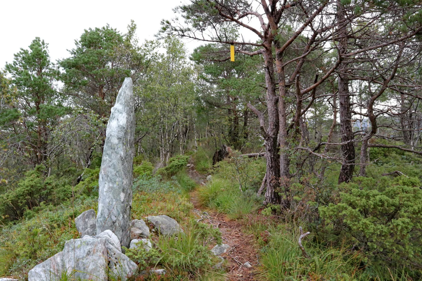 Deretter følger du stien som slynger seg i en bue opp på platået. Herfra er det bare å følge den tydelige stien videre innover. Etter hvert møter du en ny stigning som leder opp til toppplatået over tregrensen. Herfra har du fri sikt til varden på Solbakkefjellet i det fjerne.