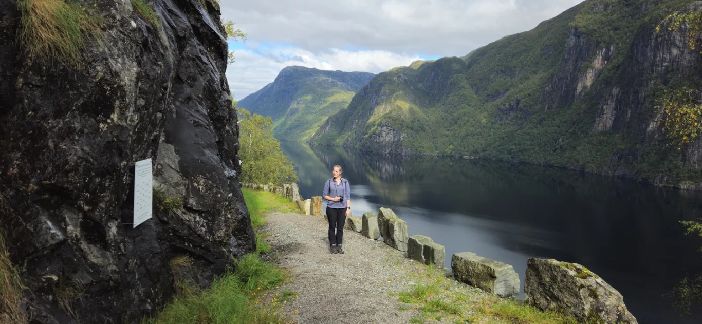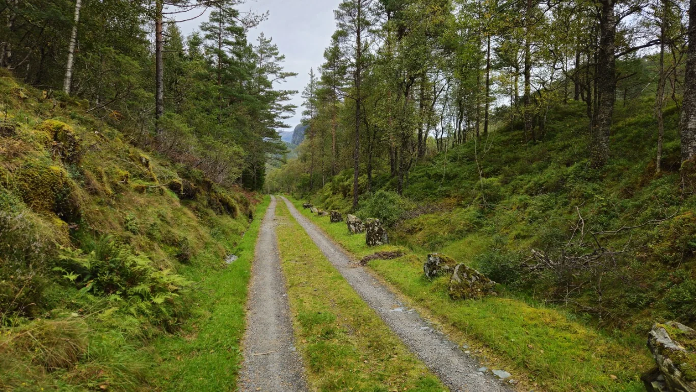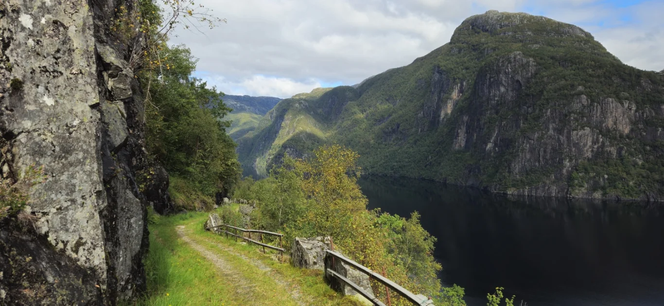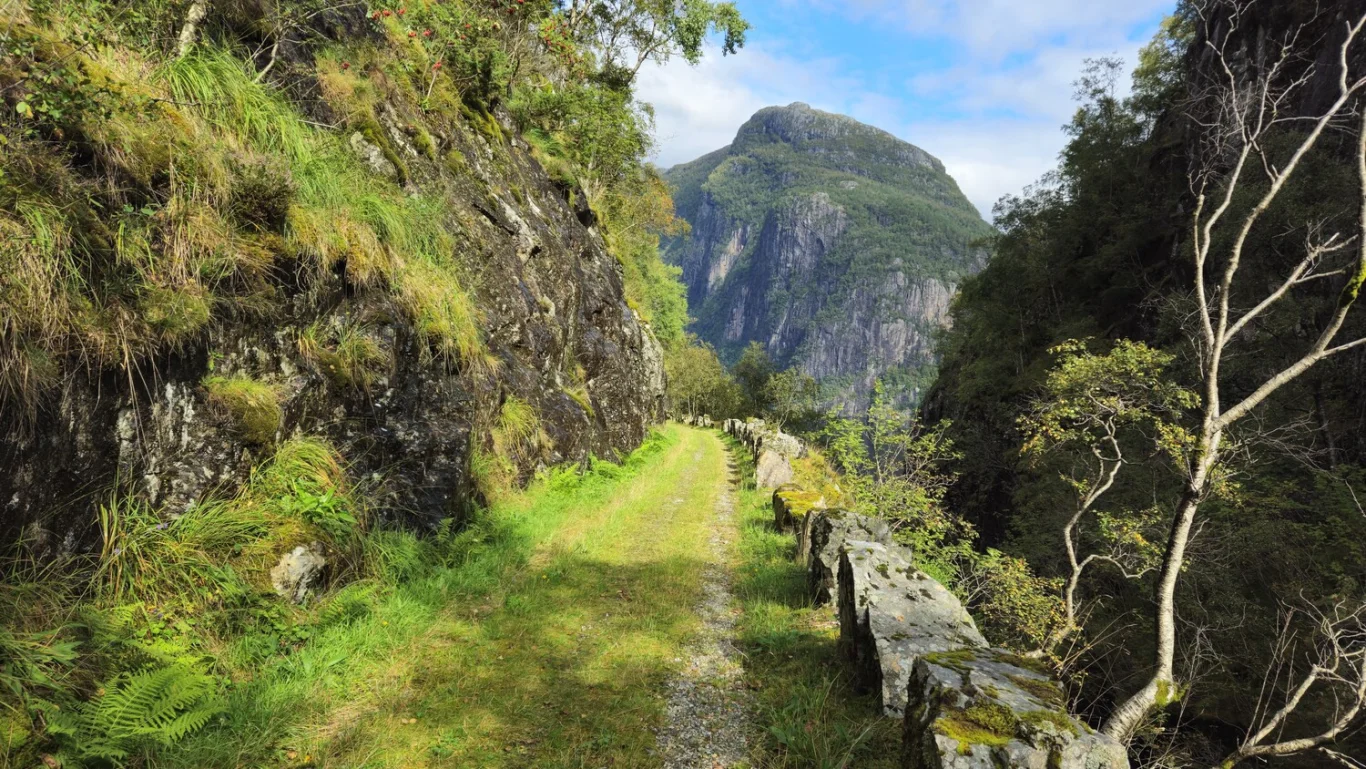 Med hele 1727 stabbesteiner slynger denne unike veien seg fra Blomdalsleitet og turlagshytta på Træet, helt ned til den idylliske fjorden ved Grøtto.