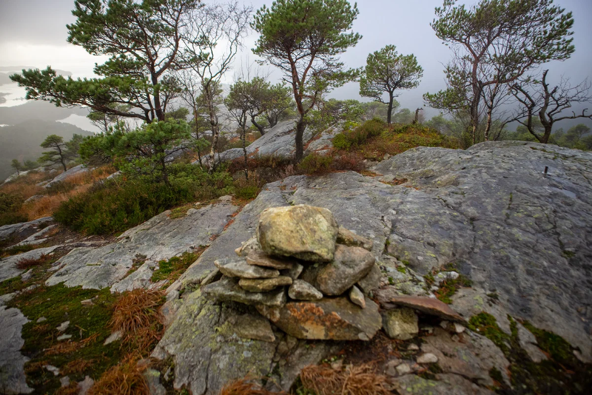 Etter noen hundre meter går det en tydelig sti inn til venstre. Gå inn på denne og følg den oppover. Du kommer til et nytt stikryss lengre oppe. Her skal du gå til venstre over myren. Følg deretter stien til toppen. Det er ingen varde på toppen, men utsikten over Lysefjorden og Lysøyen er fin.