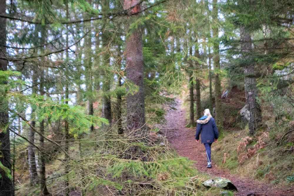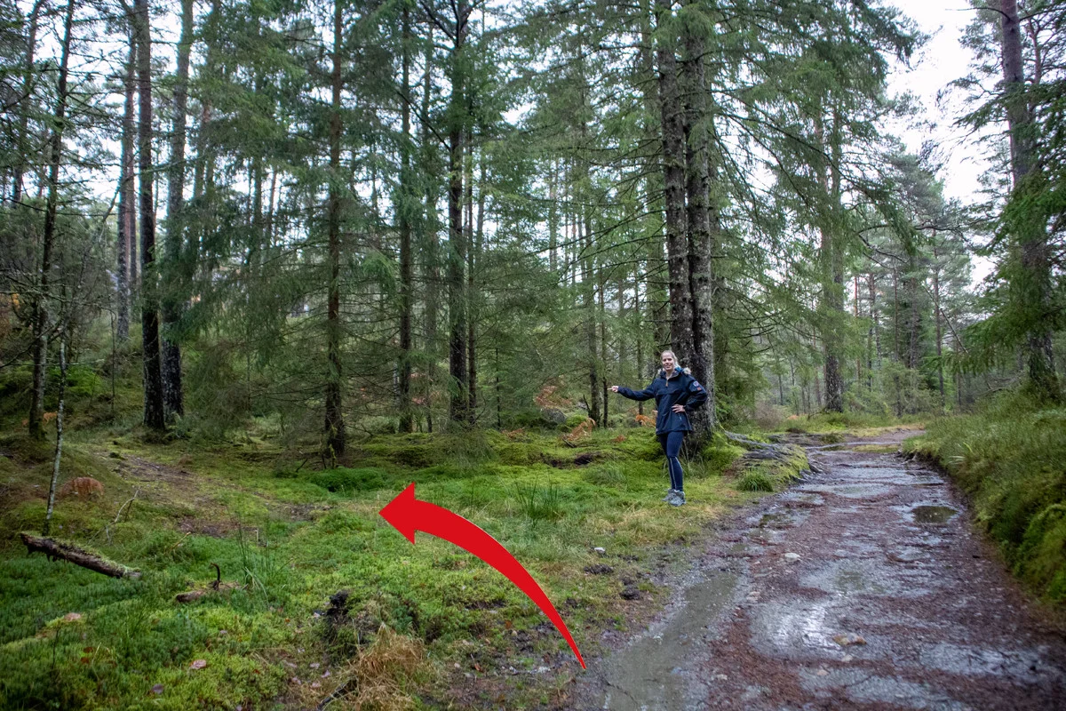 Fra parkeringen ved Nordvik skole går du grusveien innover (venstre side av fotballbanen).