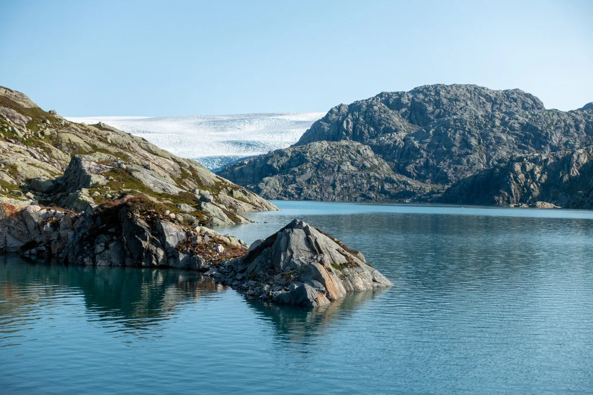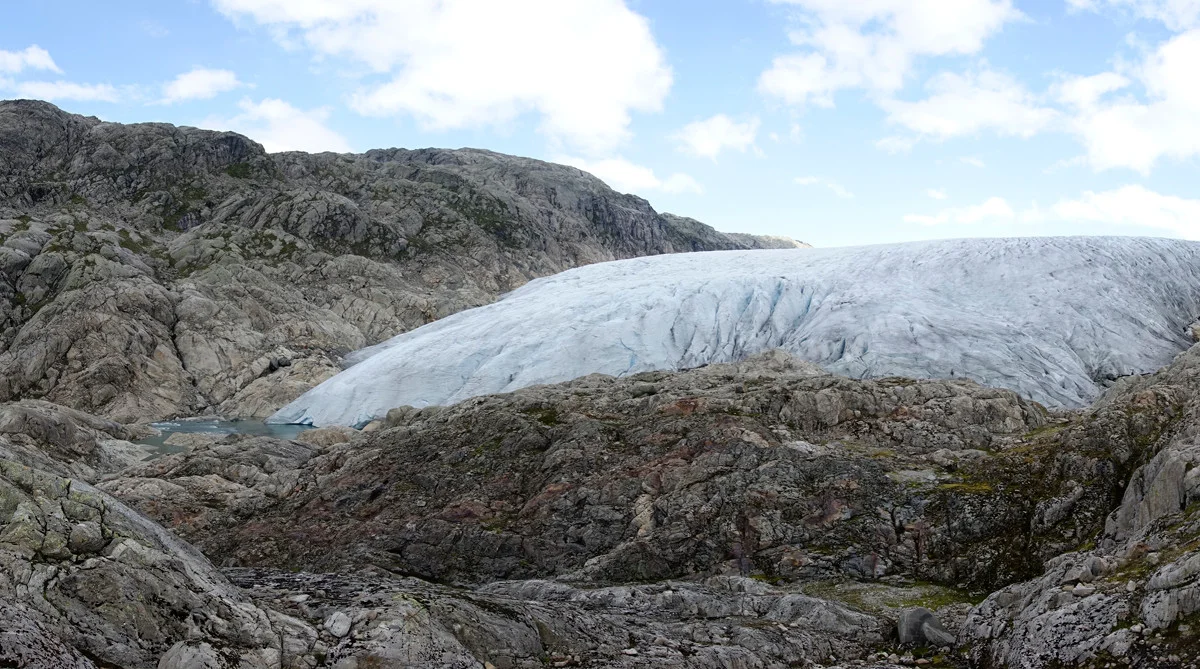 Her kan man virkelig se den mektige isbrearmen fra Svelgabreen.