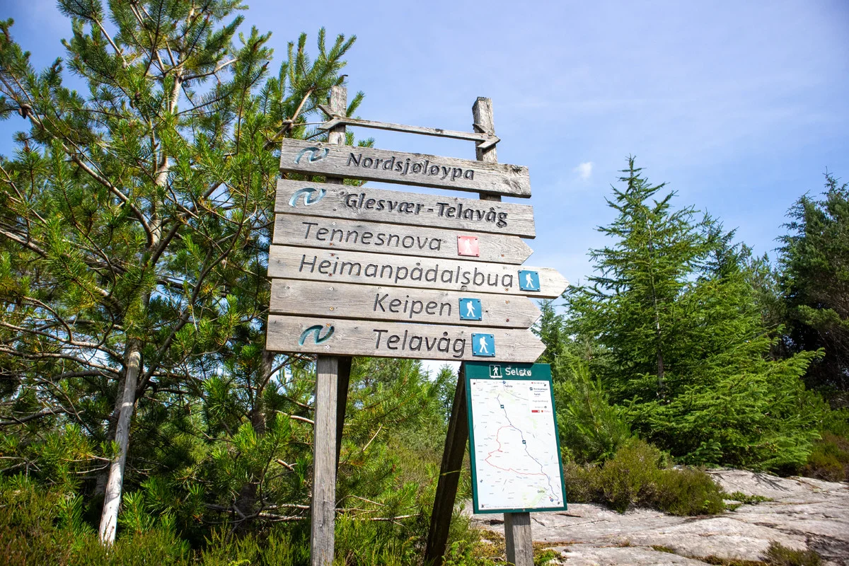 Dette er en fin rundtur i lett kupert Sotra terreng. Fra hovedveien føler du merket sti fra det store tur skiltet mot "Tennesnova".