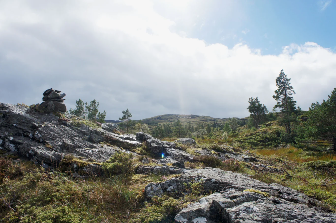 Gå samme vei tilbake. For lengre tur kan du gå videre via Grønafjellet og videre nedover innpå stien fra Mehammersåto mot Fitjar.