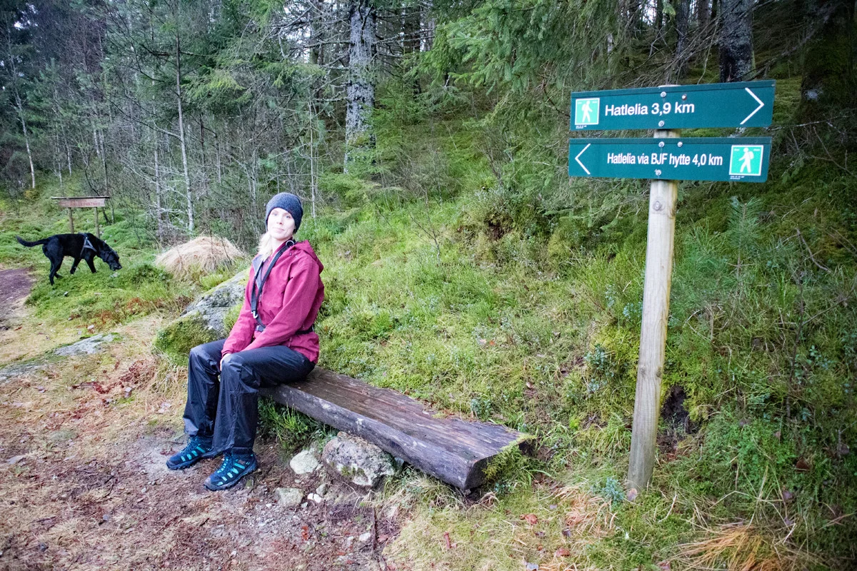 Når du kommer til toppen av bakken går du til venstre gjennom bommen. Herfra her det bare å følge grusveien til Raudlistova. Det er god vei helt frem til hytten, så turen passer også for barnevogn.