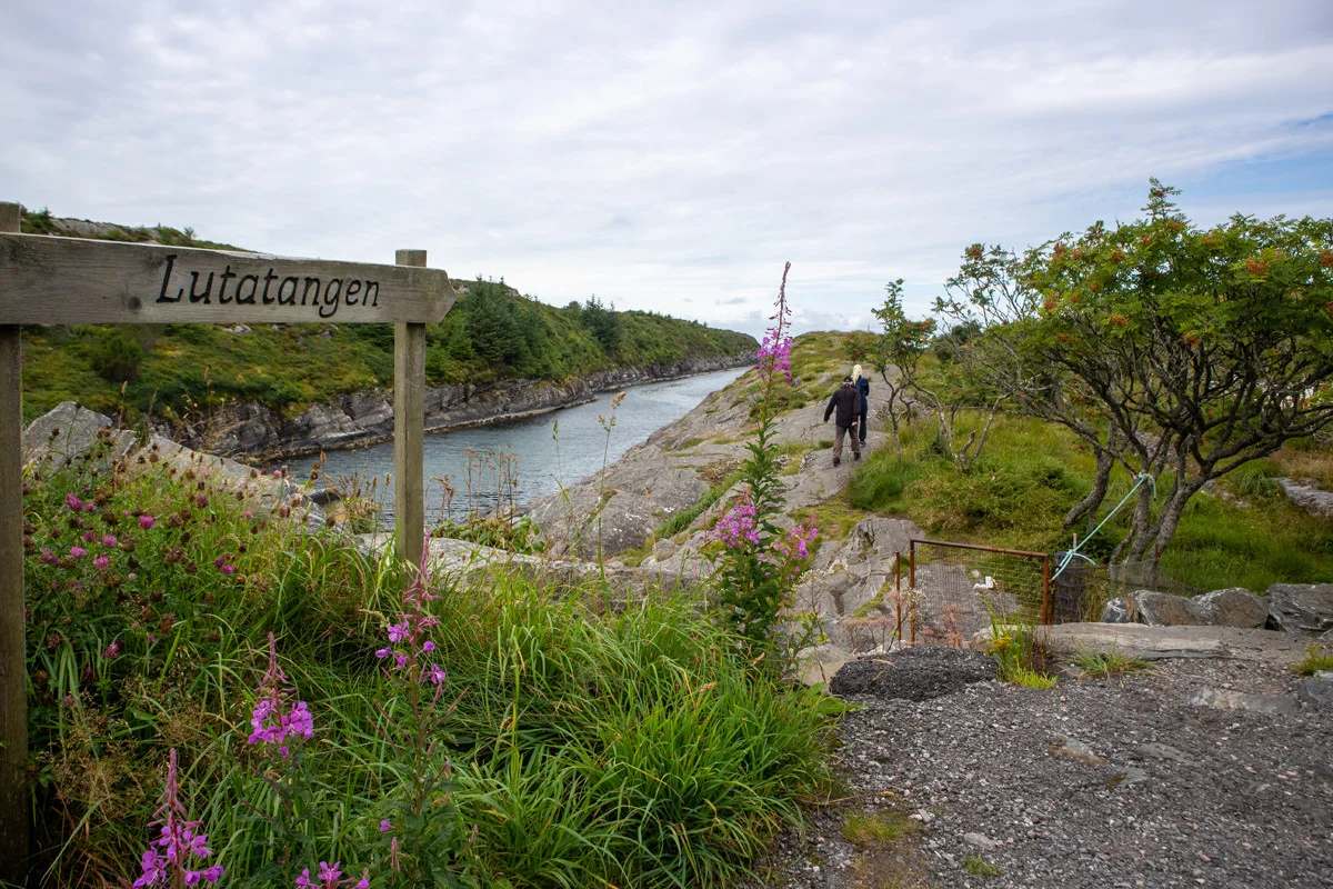 Ta av litt til høyre når du er nesten helt ute. Der går det sti helt til Lutatangen. Her står sjøsprøyten himmelhøyt til tider. Veldig populært sted for fotografer og andre turgåere. Turen ut tar ca. 30 minutter og det er forholdsvis flatt, men sjøstøvler eller sko som tåler godt med vann kan være anbefalt til tider. Den turen kan du gå både sommer og vinter, sjelden snø i området.